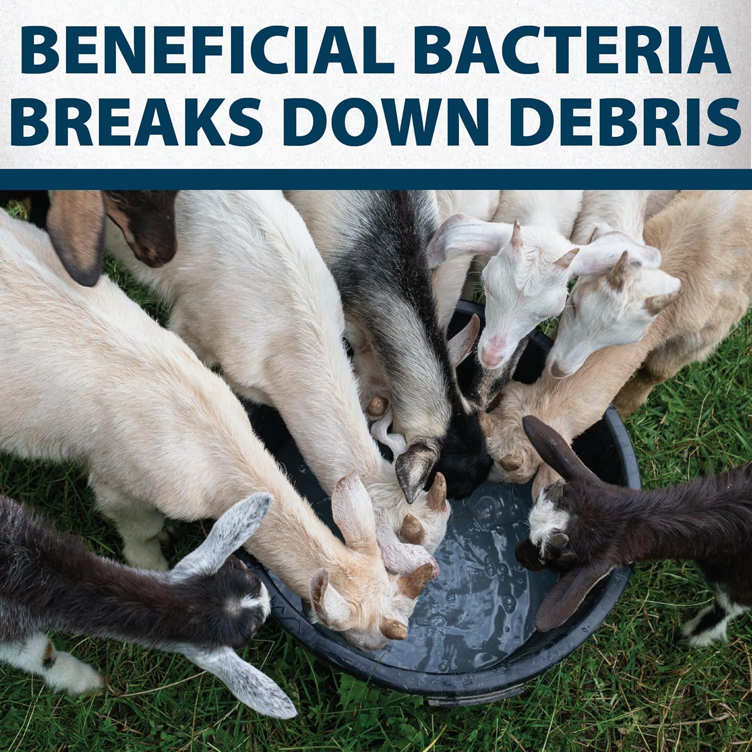 - Bacteria Treatment Breaks Down Organic Debris -- Beneficial bacteria and enzymes remove debris, maintaining clear waters for animals to drink. Apply tablets when water temperatures are above 50°F.