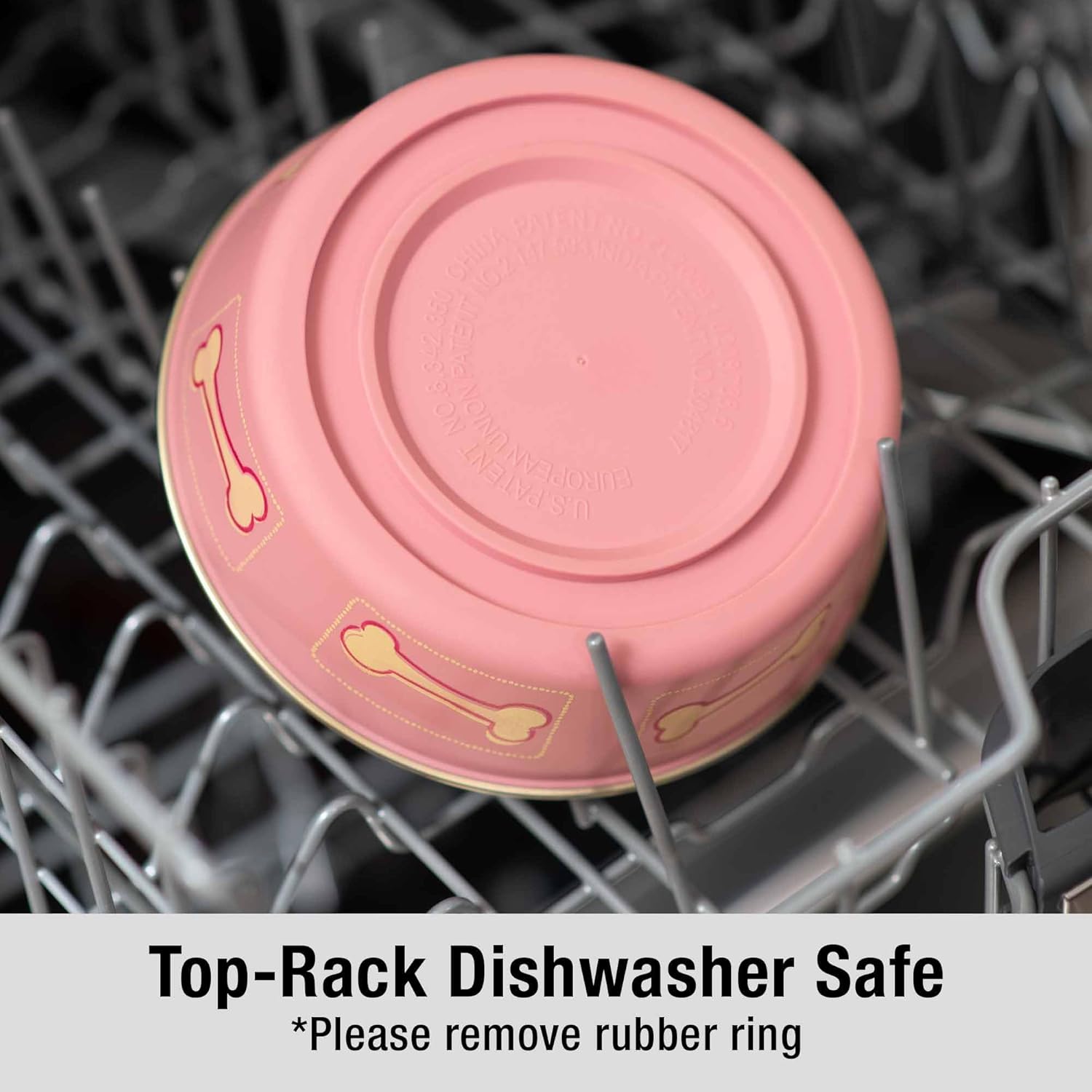 - STAINLESS STEEL & DURABLE - Bella Bowls features a stainless steel design with a poly-resin exterior great for dog food mat, which makes them dish washer safe and easy to keep clean and hygienic. Perfect cat food bowl or dog water bowl for home & travel.