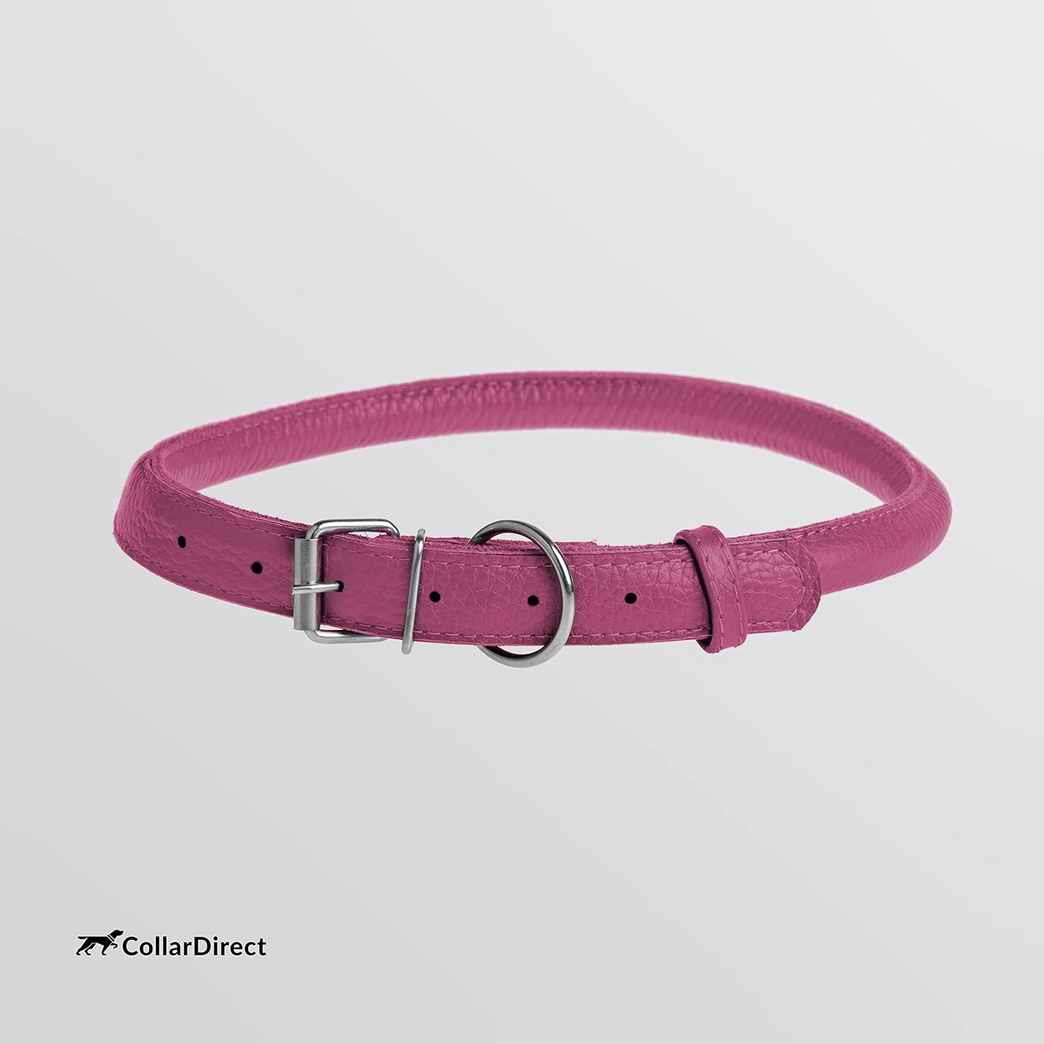 CollarDirect Rolled Leather Dog Collar, Soft Padded Round Puppy Collar, Handmade Genuine Leather Collar Dog Small Large Cat Collars 13 Colors (11-14 Inch, Pink Textured)