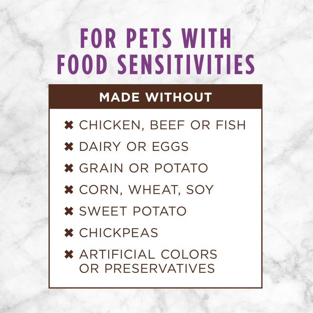 • GRAIN FREE CAT FOOD FOR CATS WITH SENSITIVITIES: Instinct Limited Ingredient cat food is made with 1 protein & 1 vegetable. No grain, dairy, eggs, chicken, beef, fish, sweet potato, potato, chickpeas, corn, wheat, soy, artificial colors or preservatives.