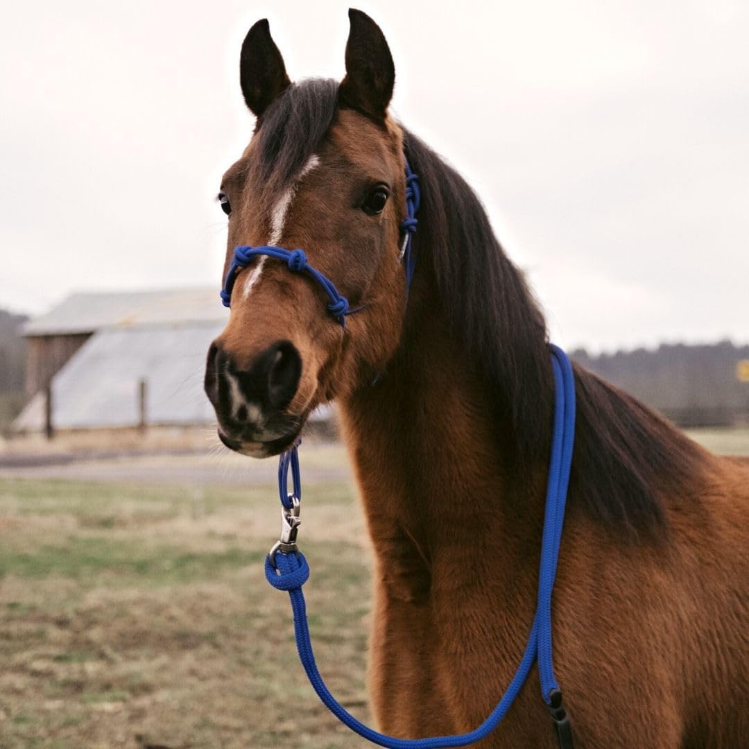 Premium 1/2" Samson EQ Yacht Braid Lead Rope with Nickel Trigger Bull Snap. Option for 12ft, 14ft and 16ft Lengths (Blue, 12 FT)