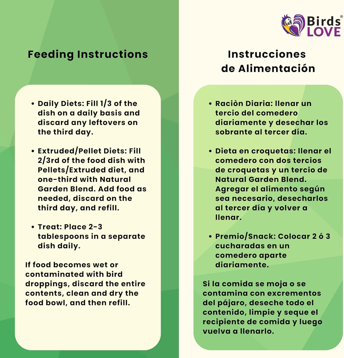 - No added preservatives nor sweeteners: natural sweet fruits to maintain healthy skin, muscles, and feathers