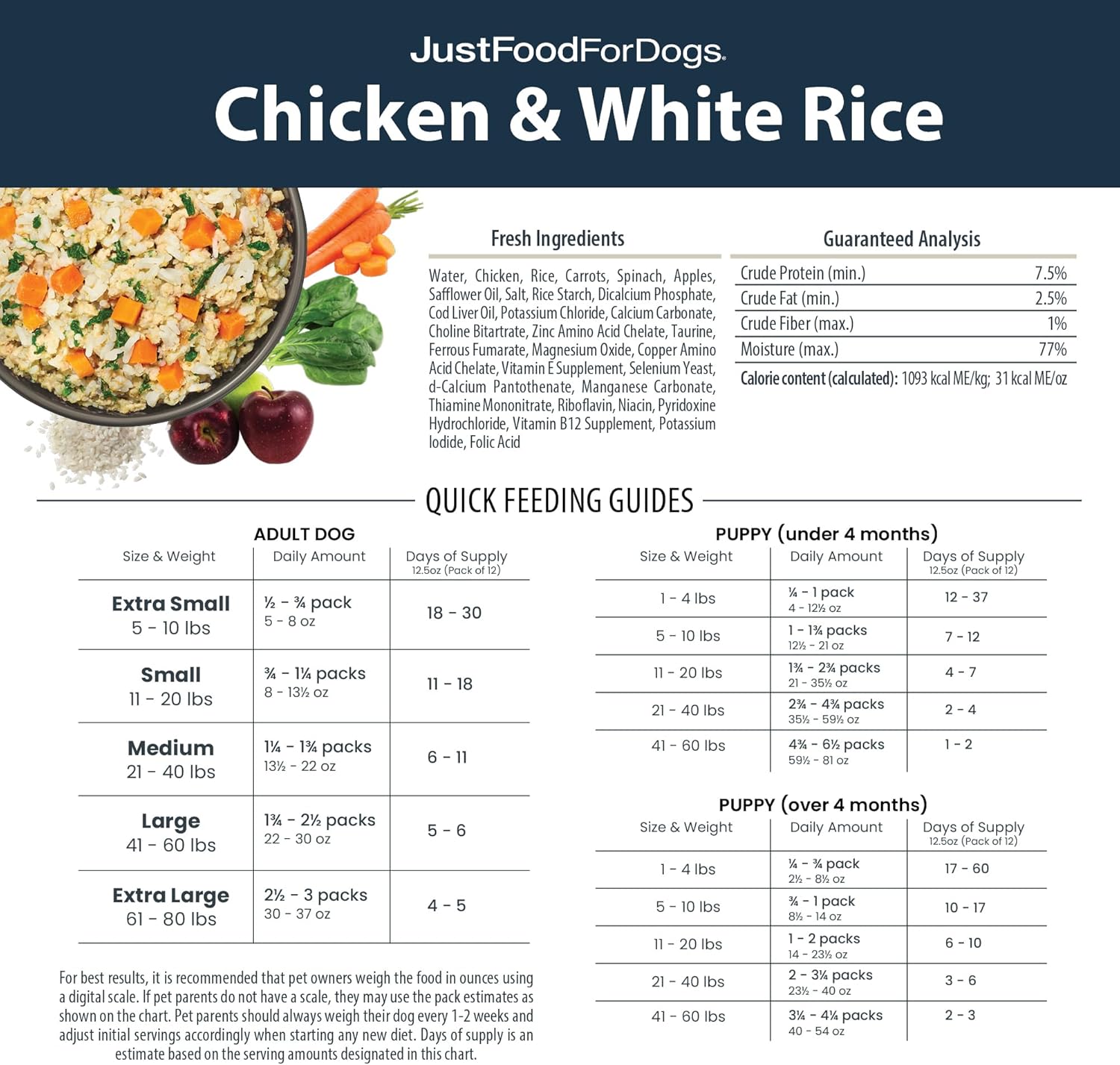 JustFoodForDogs Pantry Fresh Wet Dog Food, Complete Meal or Dog Food Topper, Chicken & White Rice Human Grade Dog Food Recipe - 12.5 oz (Pack of 12)