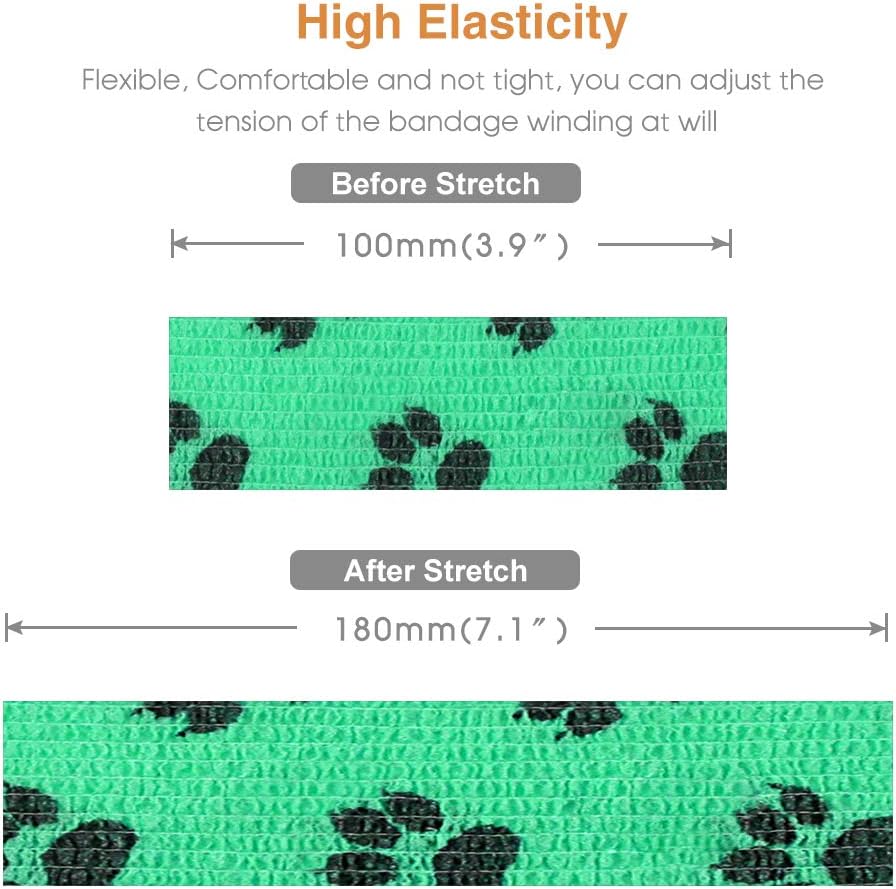 - ★ High Elasticity & Self Adhesive - Self adhesive bandage wrap ratio of over 180%, providing adjustable tightening force and excellent support. AUPCON Vet Wrap sticks to itself not the hair and skin.It is great for applications where adhesive is not wanted. It’s great for Great for emergency aid kits and field activities.