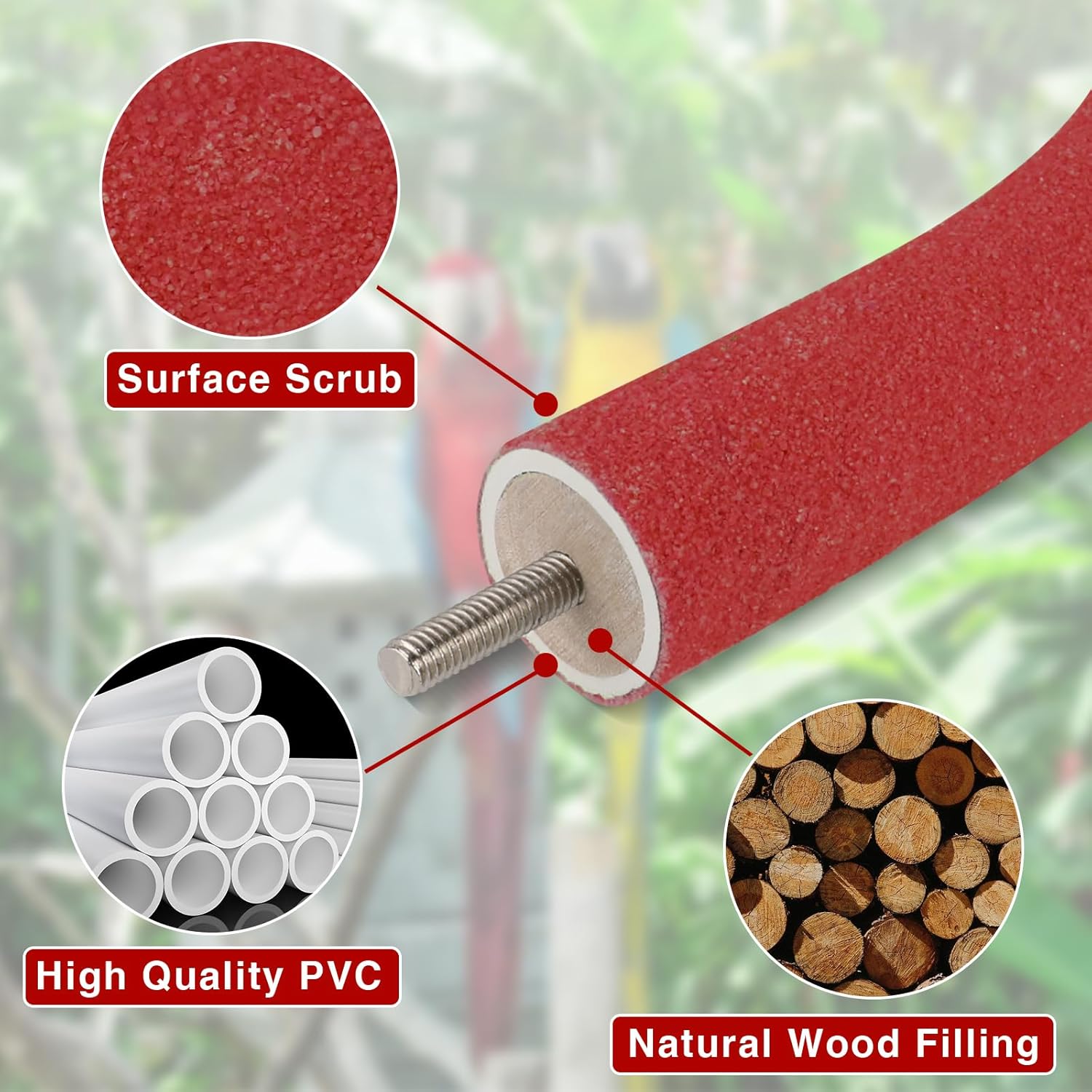 - Safe material: These bird perches have a rough surface, the outer layer is covered with natural quartz sand and high quality PVC, and the inner layer is made of natural wood, the material is safe, non-toxic and odourless, providing a safe and comfortable perch for your birds to play and stand