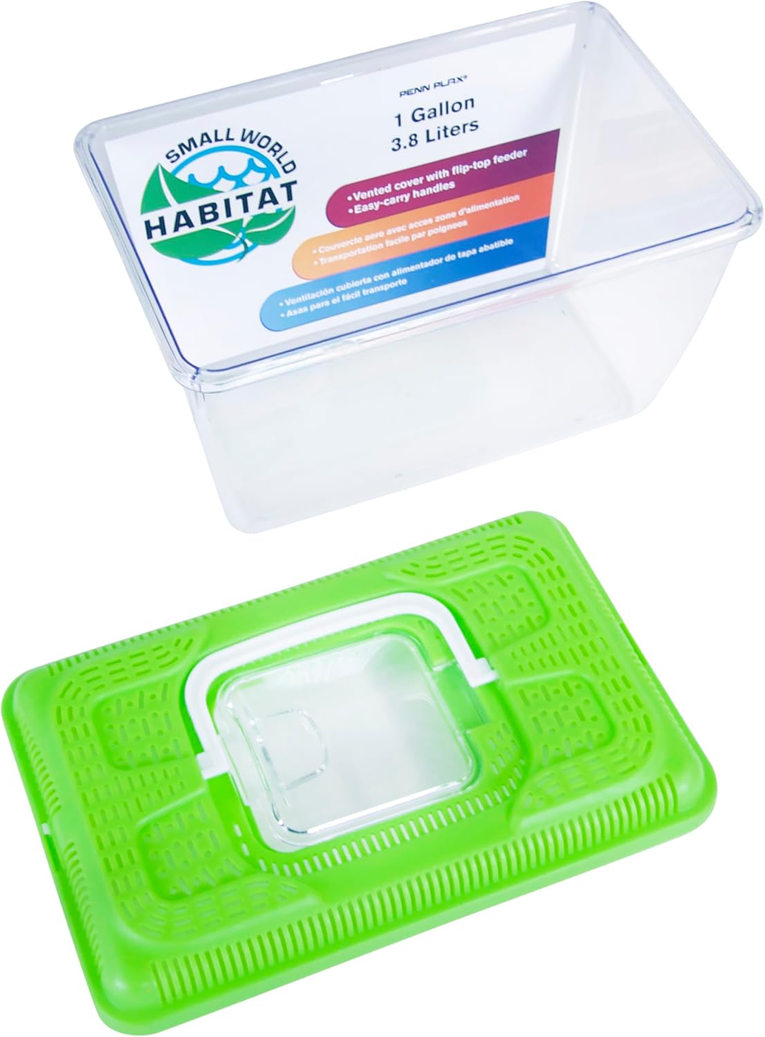 Penn-Plax Small World Habitat – Portable Clear and Transparent Plastic Tank – Excellent for Small Critters and Creatures – Easy to Clean & Handle – 1 Gallon, 10"L x 5.43"W x 6.26"H