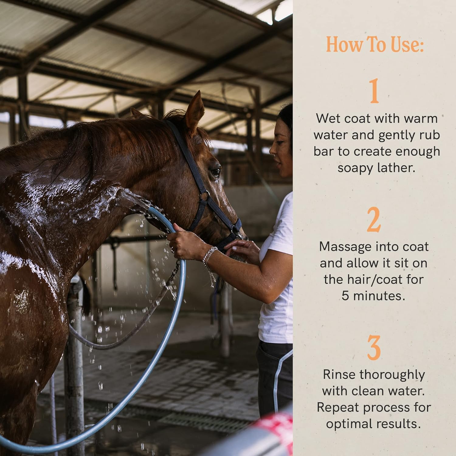 - Comfort in Every Wash - Lathers quickly, rinses clean, and leaves no residue—just a fresh, healthy finish. This 100% detergent-free, hypoallergenic bar is a barn favorite for horses with dry or allergy-prone skin. Proud winner of the 2025 Mindful Awards for Bath Product of the Year.