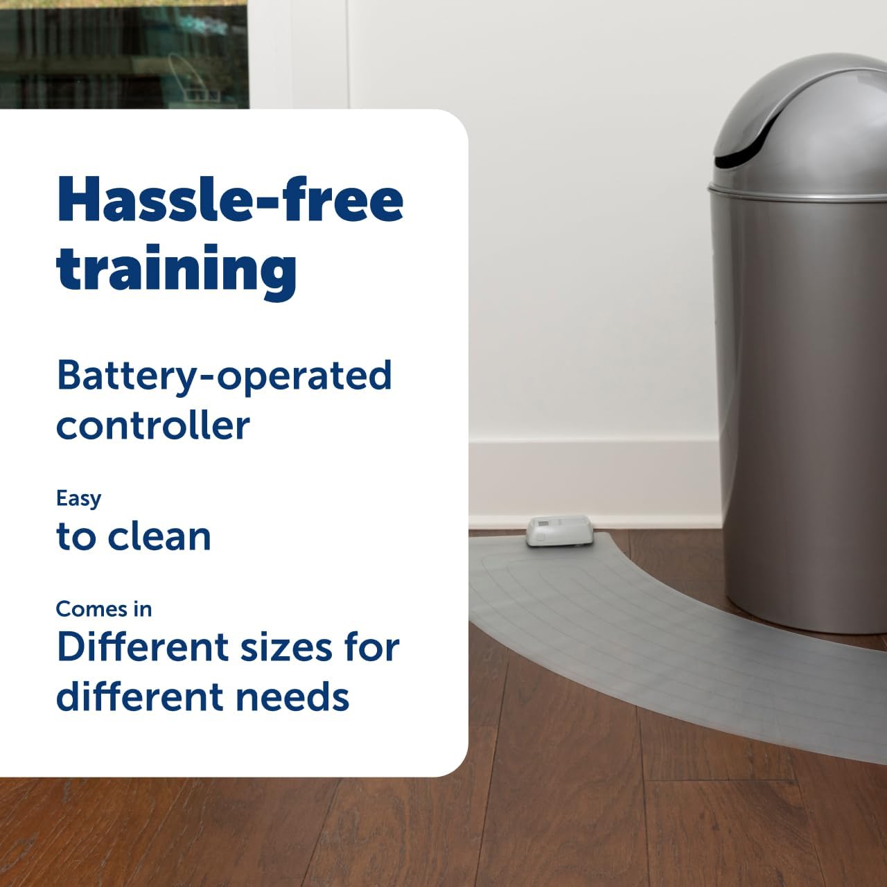 - Easy To Use & Maintain: This transparent pet mat is battery operated, wipes clean, and is available in multiple sizes to protect furniture, counters, doors, and more