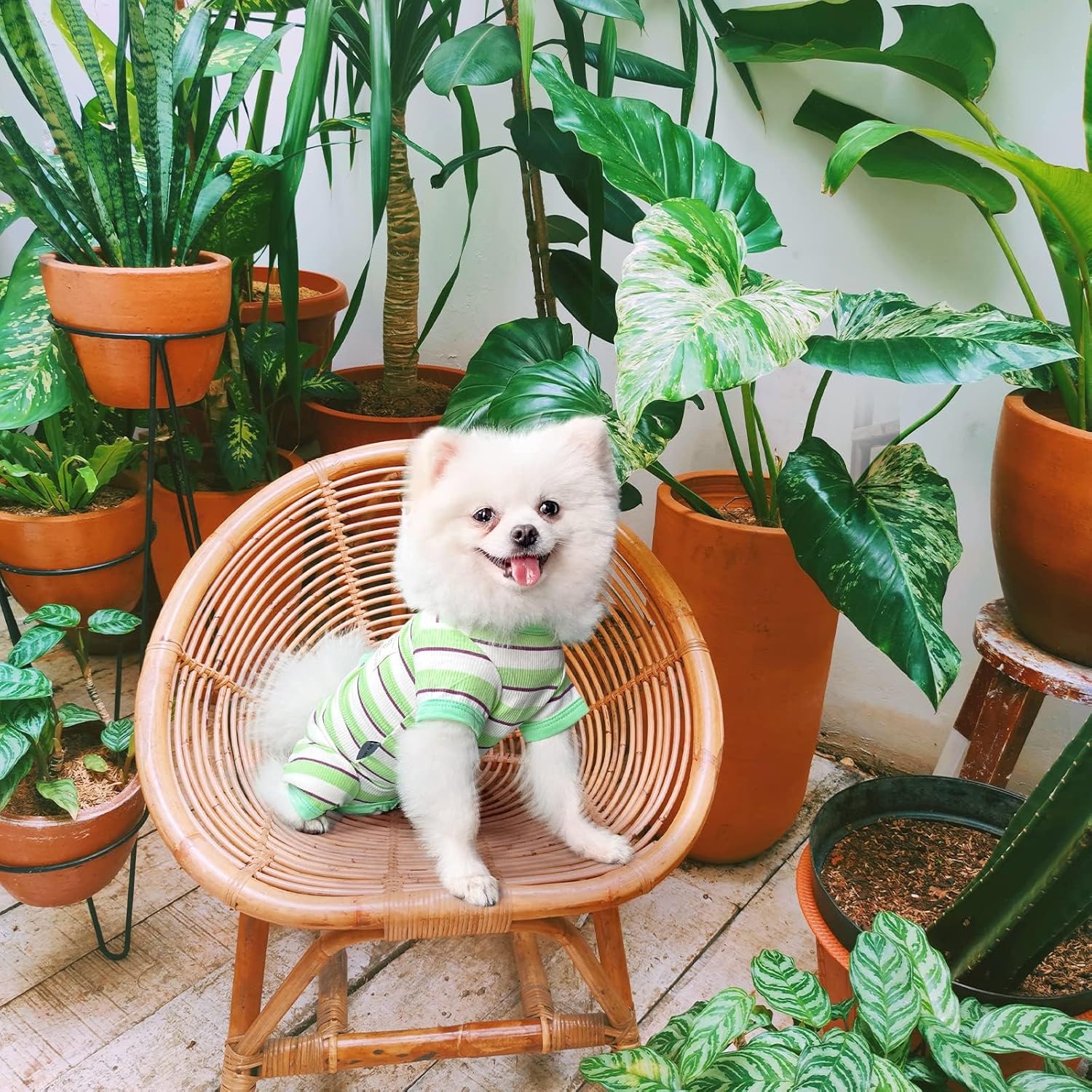 TONY HOBY Dog Pajamas, Male Dog Jumpsuit with Green Stripe, Dogs Clothes for Small Medium Size Dogs (Green&White, Boy, XS)