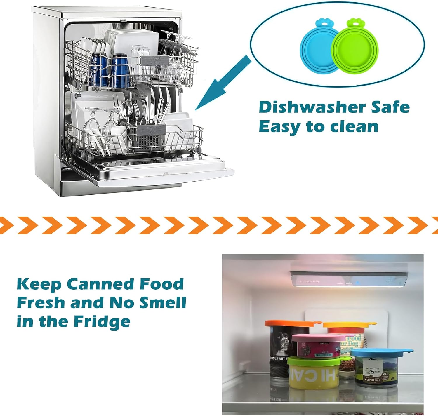 - Safe and Nontoxic: These can lids for dog food are made of 100% Premium Silicone at food grade, durable, safe and nontoxic, could restore with food long time with no harm, dishwasher safe
