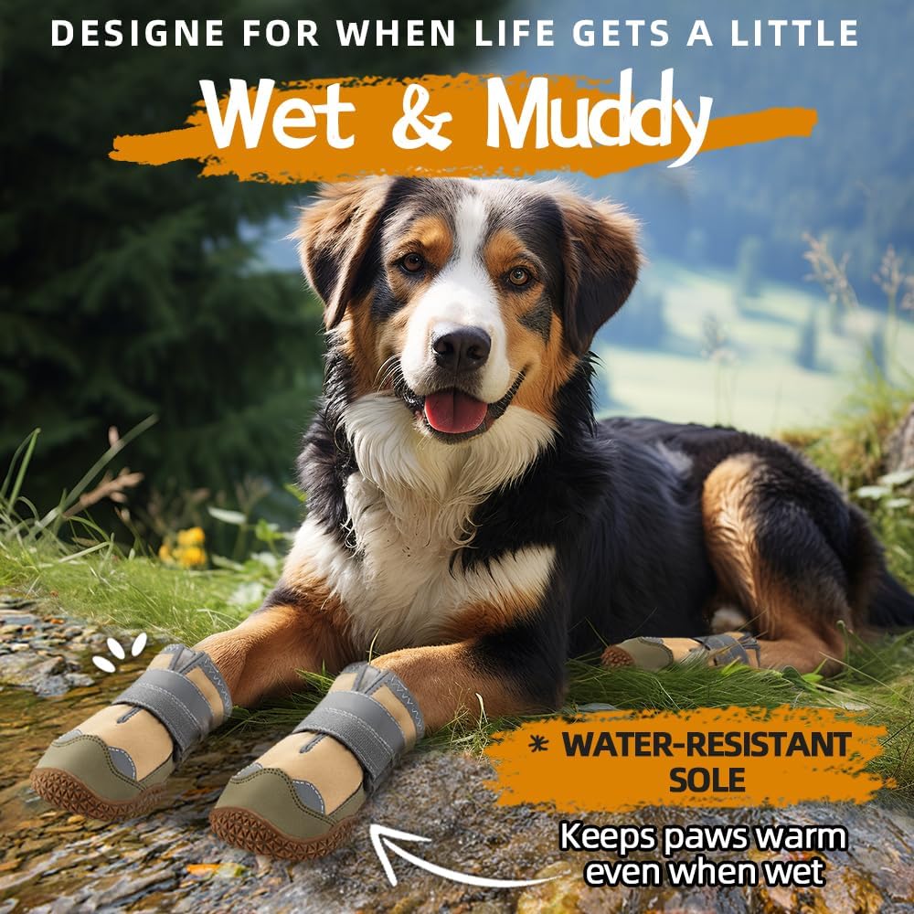 Dog Shoes for Large Dogs, Medium Dog Boots & Paw Protectors for Hardwood Floors, Outdoor Dog Booties for Hot Pavement Winter Snow Hiking, Waterproof Dog Shoes with Reflective Strips Size 6