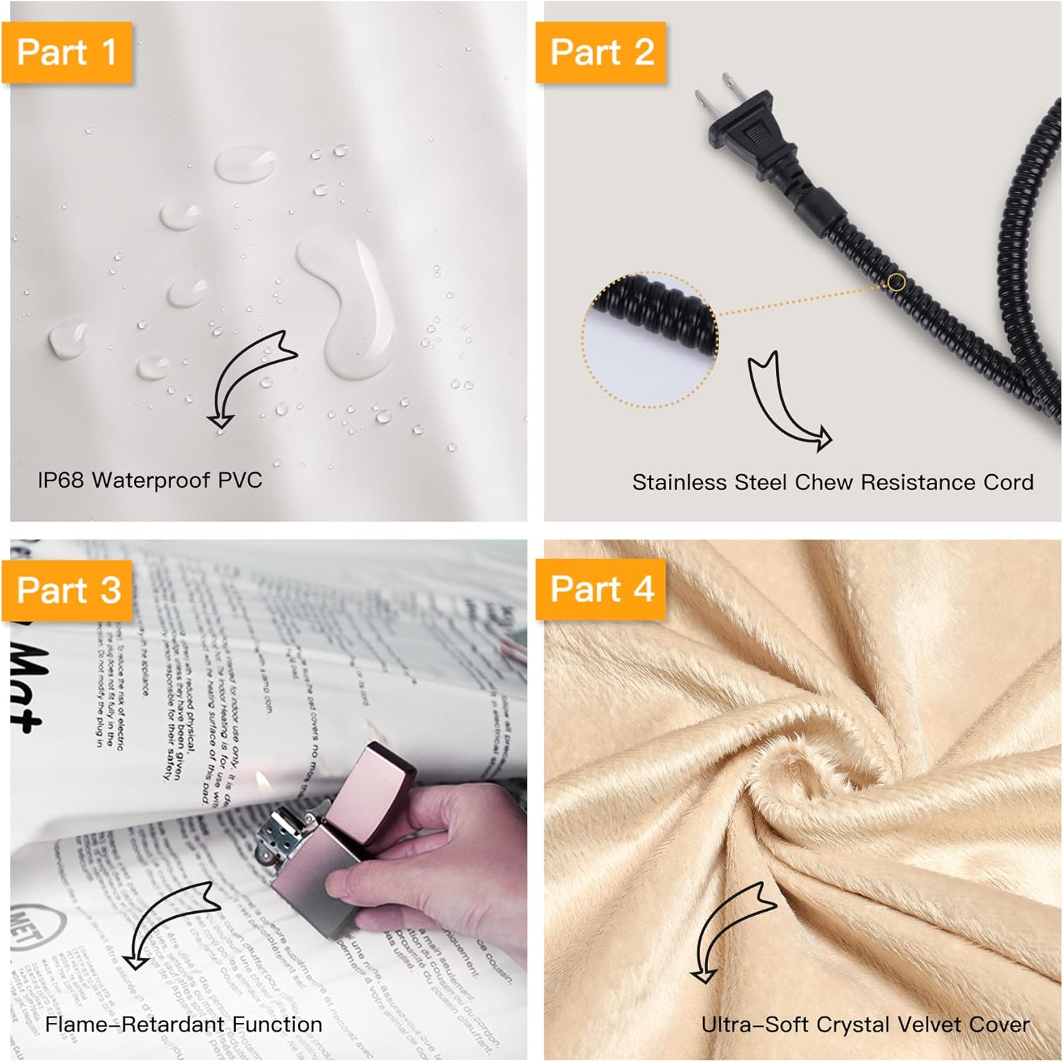 - ❤【Safety and Secure Structure】7-layer protective structure with UL-certified heating wire protect pets from burns. Soft PVC envelope with waterproof and flame-retardant function. Built-in intelligent temperature sensor in the heating pad to prevent overheating to protect pets. Don’t let your pets lay on the pet heating pad without a plush cover.