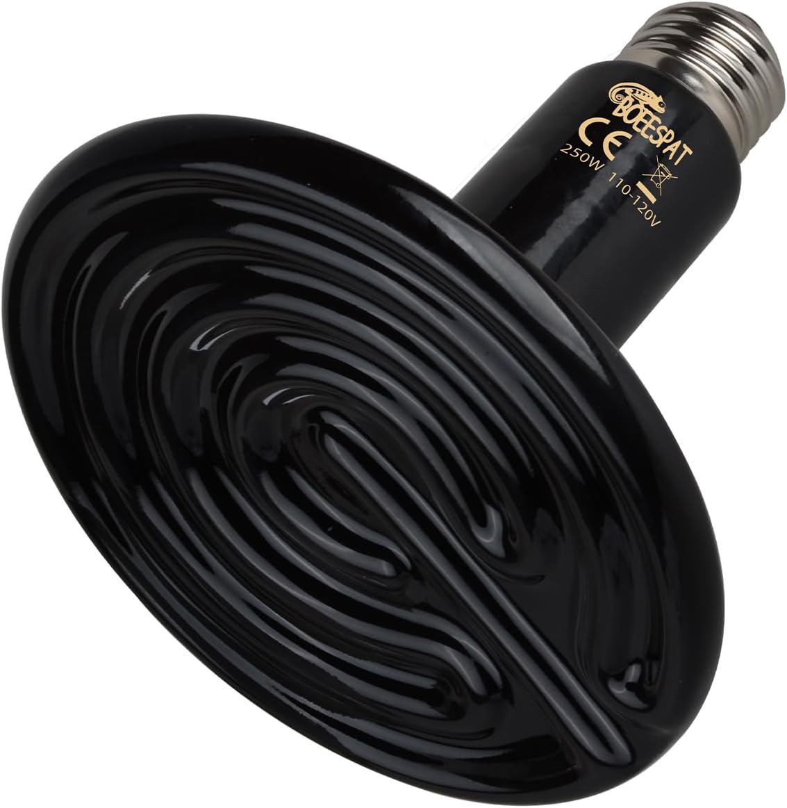 - BOEESPAT reptile ceramic heat lamp emits natural heat without any light, so it won't disturb the sleep of reptiles or pets. Adopted material into ceramic raw materials, thermal efficiency can be up to 99%.