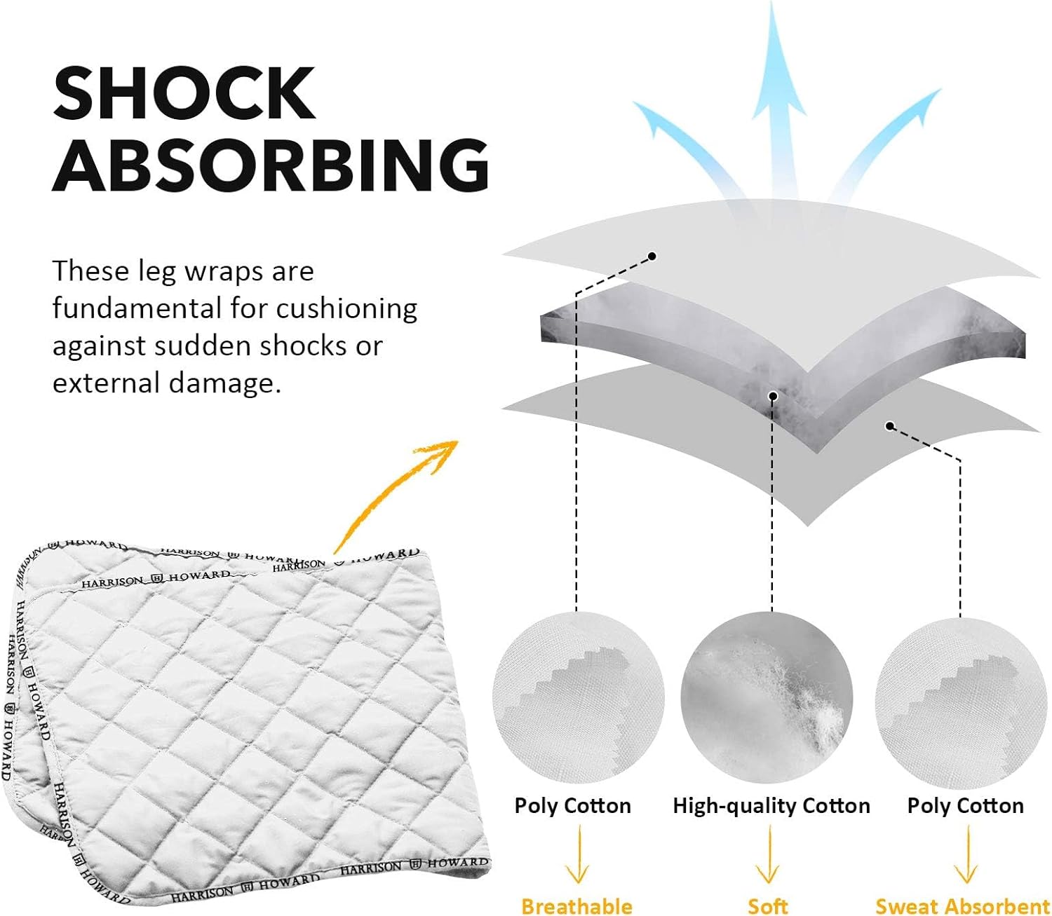 Harrison Howard Medicine-Retaining Shock-Absorbing Pressure Sores Prevention Quilted Leg Wraps for Horse Set of 4-White M