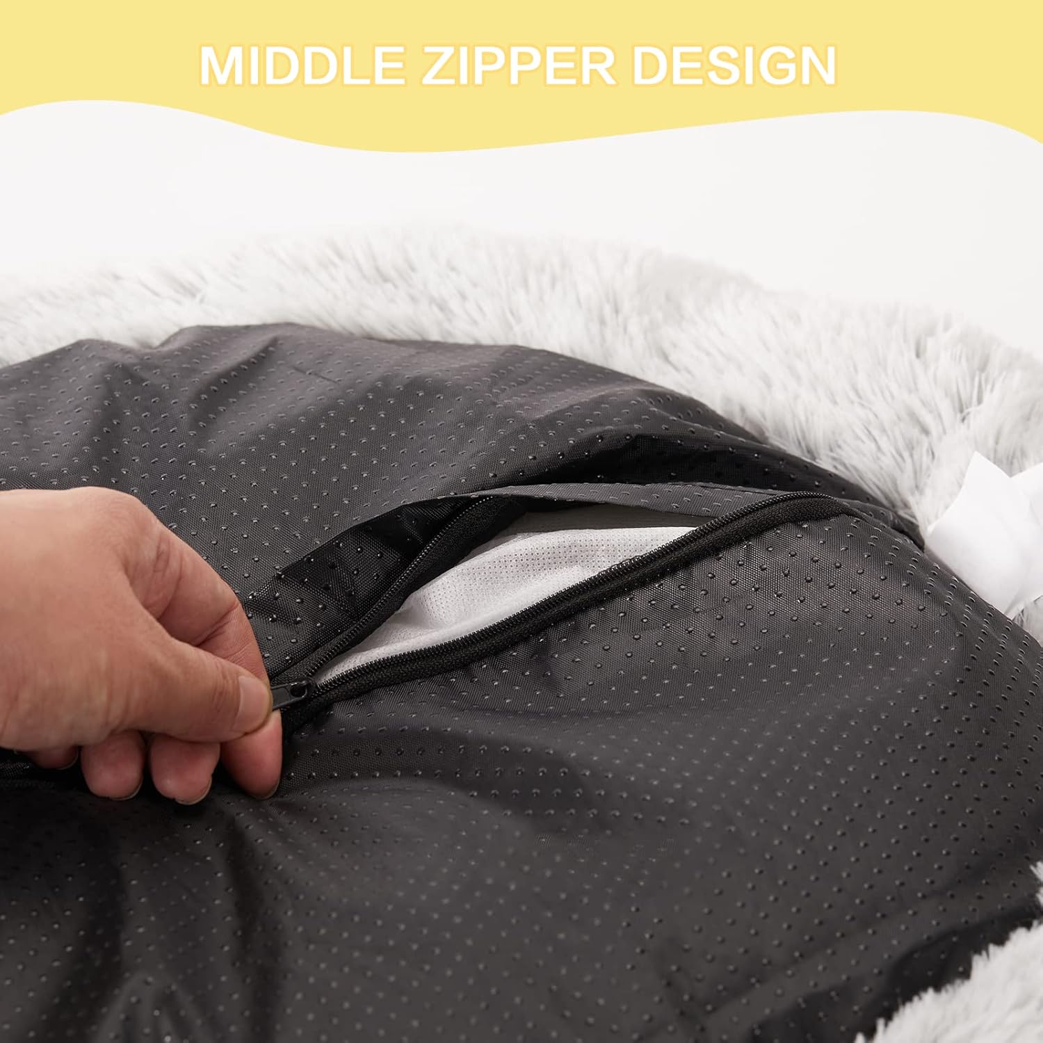 • [Easy Care] This plush dog bed is equiped with a middle zipper on the bottom. The cover is machine washable for your convenience. Tumble dry at low temperature. Do not bleach. Please shake and pat the fuzzy dog bed to make completely fluffy before use.