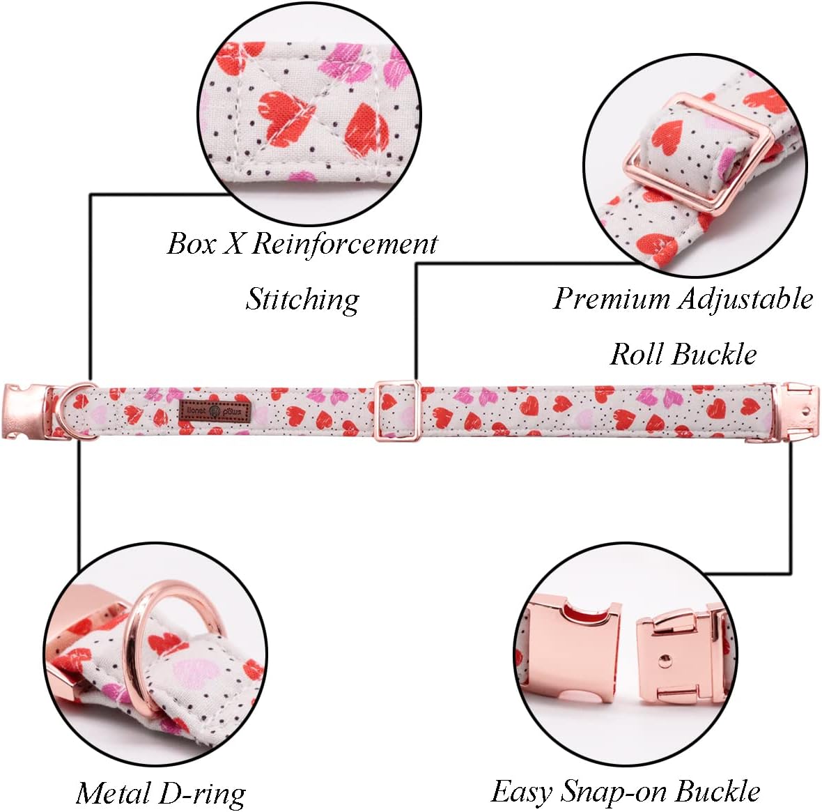 Lionet Paws Valentines Day Dog Collar with Bowtie, Dog Bowtie Collar with Metal Buckle for Dogs, Adjustable Comfortable Dog Collar Girl Boy, S, Neck 10-16 in