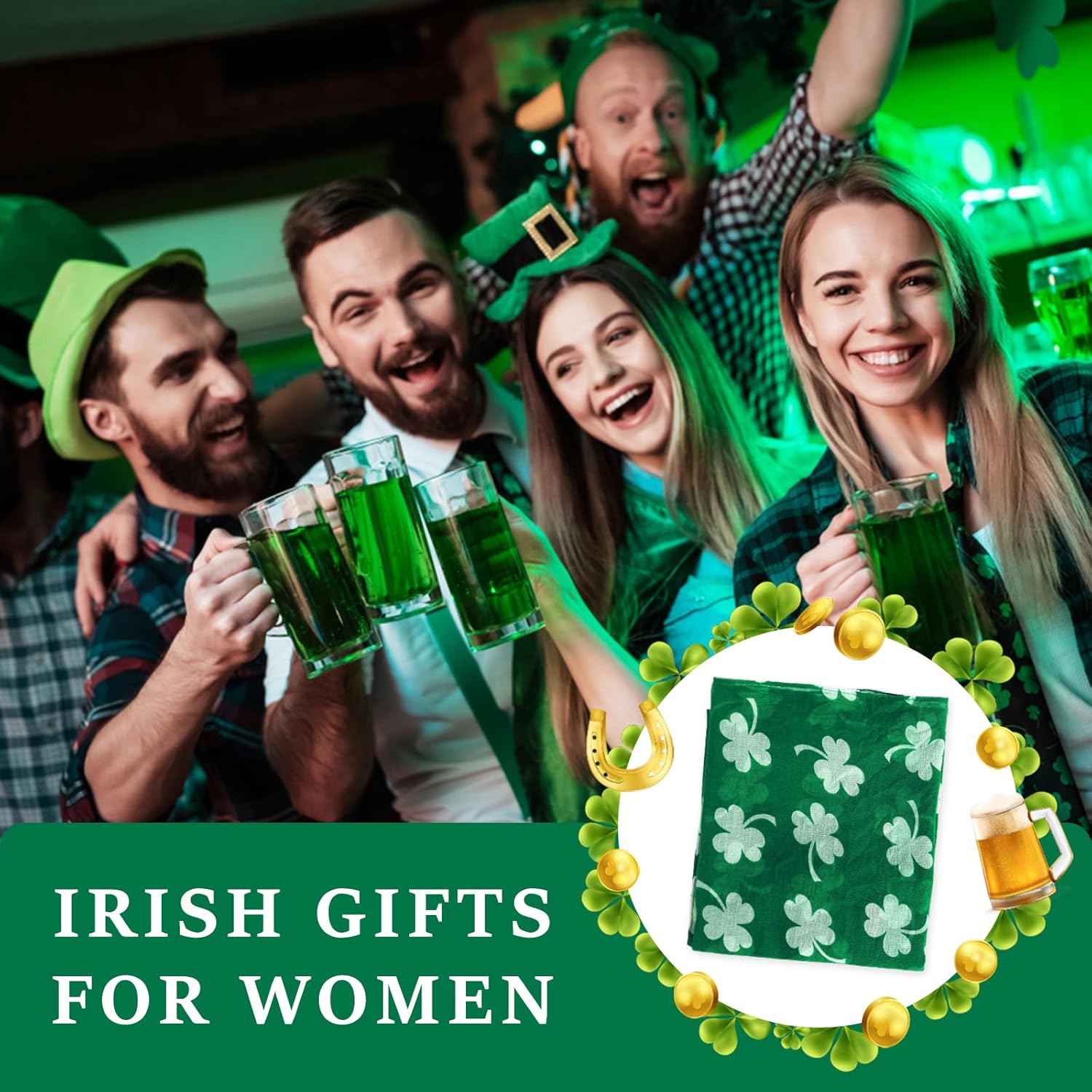 - The green shamrock scarf is a great accessories for daily outfits. The lightweight wrap scarfs can be worn around hair, head, face, neck, shoulder or waist. The fashion & elegant for handbag or hat are funny and adorable.