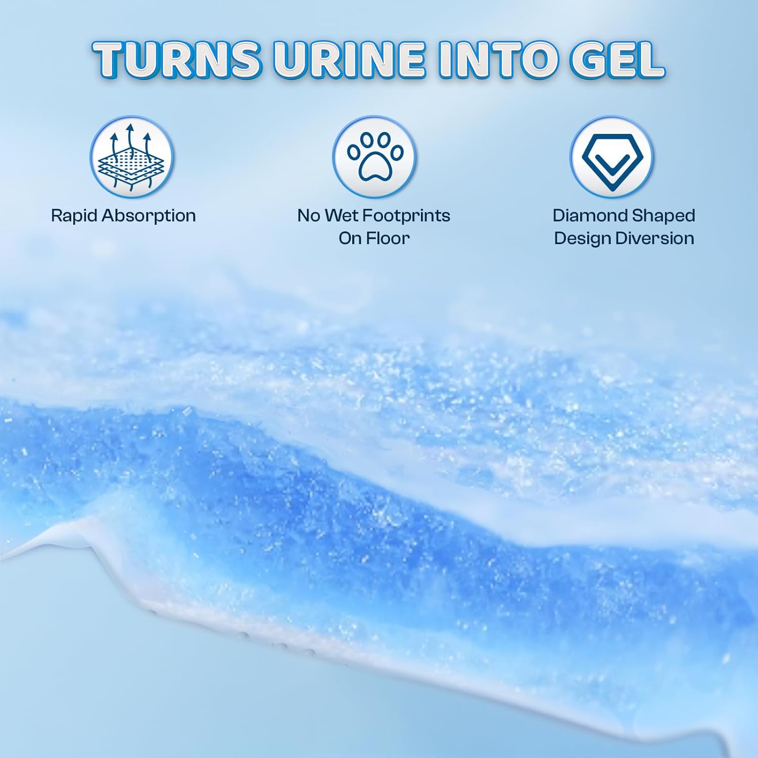 • 【Supper Liquid Lock-in Diamond Quilting Design & Quick Dry】diamond quilting design absorb liquid faster and polymer turns liquid into gel, preventing tracking, liquid overflow, and odor. Even handy for cold wet weather, make dog training pads are easy to pick up without leakage or overflow