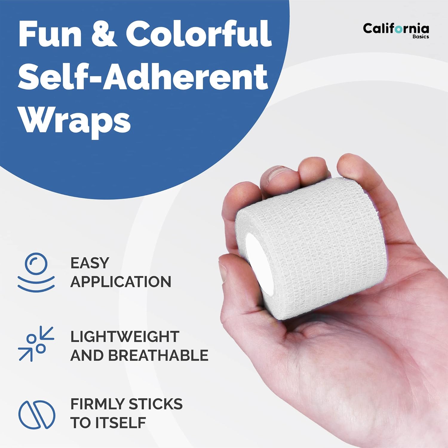 California Basics Self Adhesive Bandage Wrap - Self Adhering Non Woven Cohesive Bandage Rolls - Stretch Wrap - Multi Colored Athletic Tape for Wrist - Waterproof (2 inch- 12 Pack- White)
