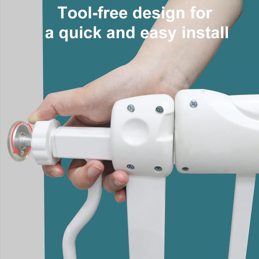 - 【GREAT FOR MOST OPENINGS】Our white gate is suitable for different doors! Choose for openings between 25"-76.37".We have different baby gates sizes,it doesn't include all extensions,the extension which you received denpends on your door opening.Whether your dooway is wide or narrow ,you can find the suitable baby gate or pet gate.And our large walk thru gate makes it easier to walk when holding the baby.