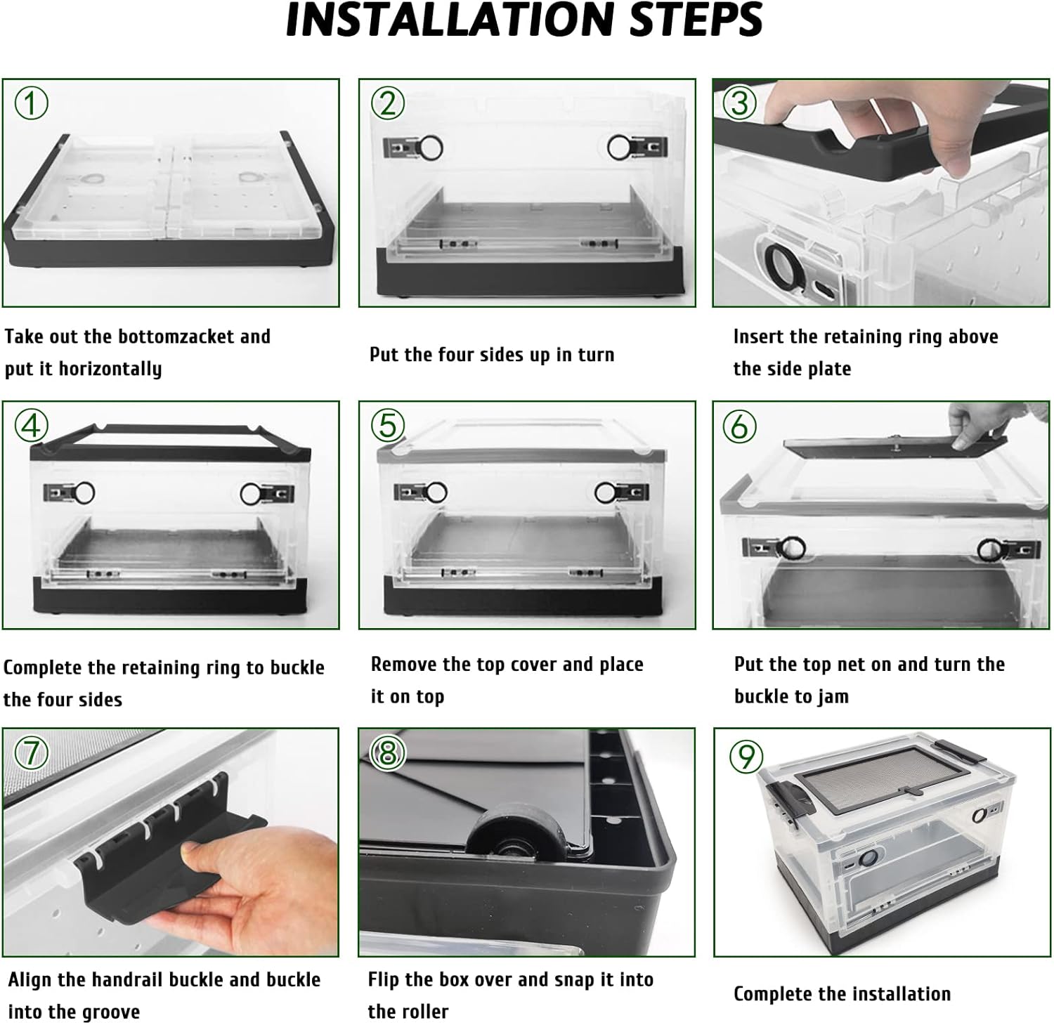 - Easy to Assemble: Very easy to install, only takes a few minutes to set up.If you want to travel with your pet, this tank is for you! Note: It is not recommended to feed crickets, worms, super worms and other feed