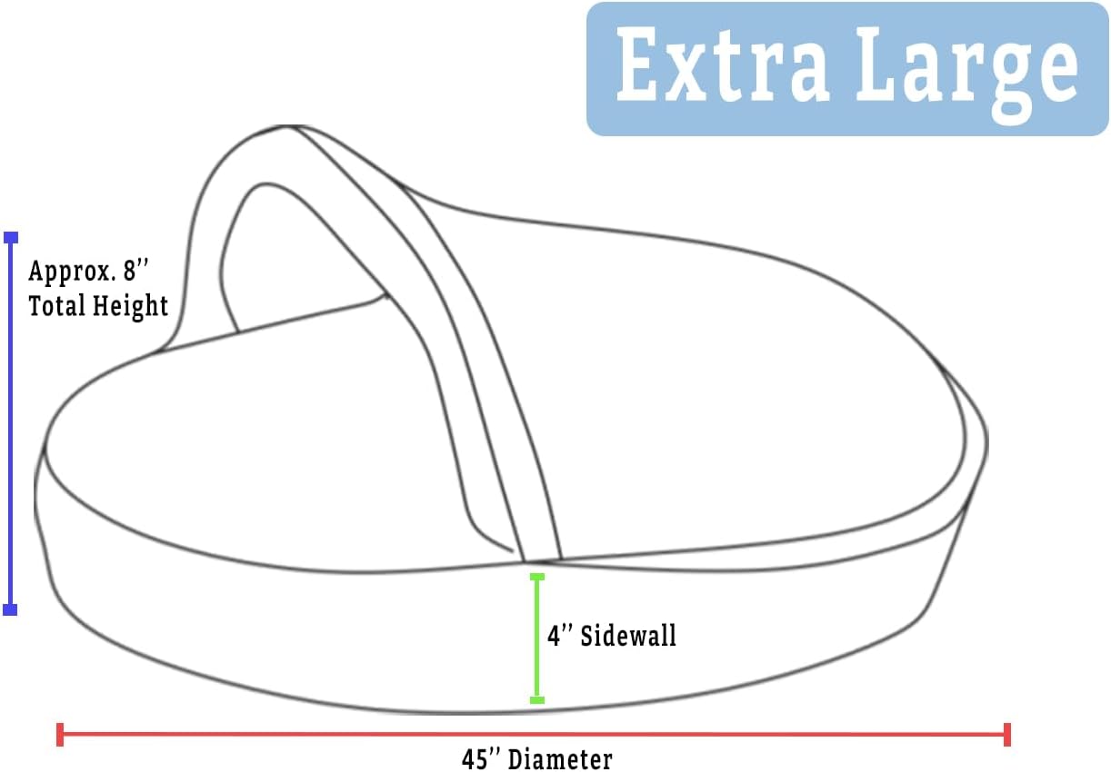 • SIZING: This Extra-Large Cozy Cave has a 45” diameter and a 4” sidewall, and is approximately 8” tall overall. A thin removable plastic tube keeps the hood open for easy entry or exit and can be removed through the small hole at the corner of the hood. This size Extra-Large provides space for larger breeds while creating a snug, enveloping feel. Please scroll down and check our size chart below for our best recommendations based on breed to ensure you buy the right size for your pup.