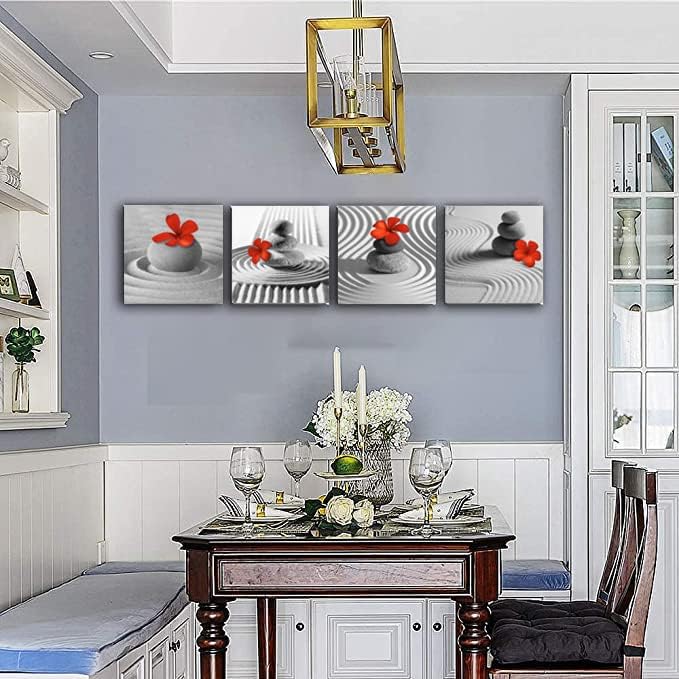 Yxbhhym Bathroom Decor Zen Decor Gray Wall Art Red Floral Wall Pictures Black and White Wall Art Flower Zen Stone Sand Pebble Canvas Print Artwork for Bedroom Living Room Home Wall Decoration