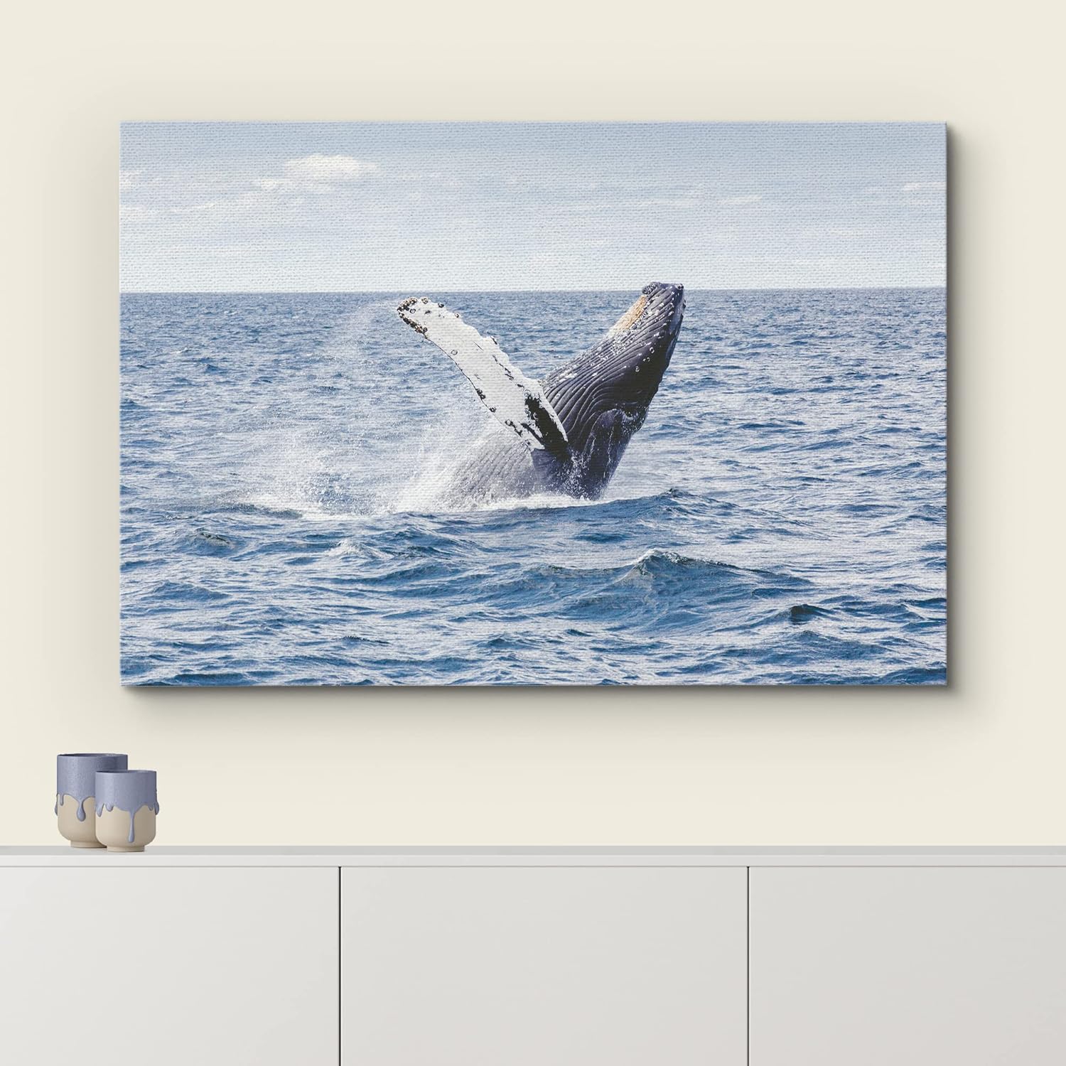wall26 Canvas Print Wall Art Tropical Ocean Sea Water Horizon Blue Whale Nature Animals Photography Realism Rustic Scenic Landscape Wilderness Colorful for Living Room, Bedroom, Office - 12"x18"