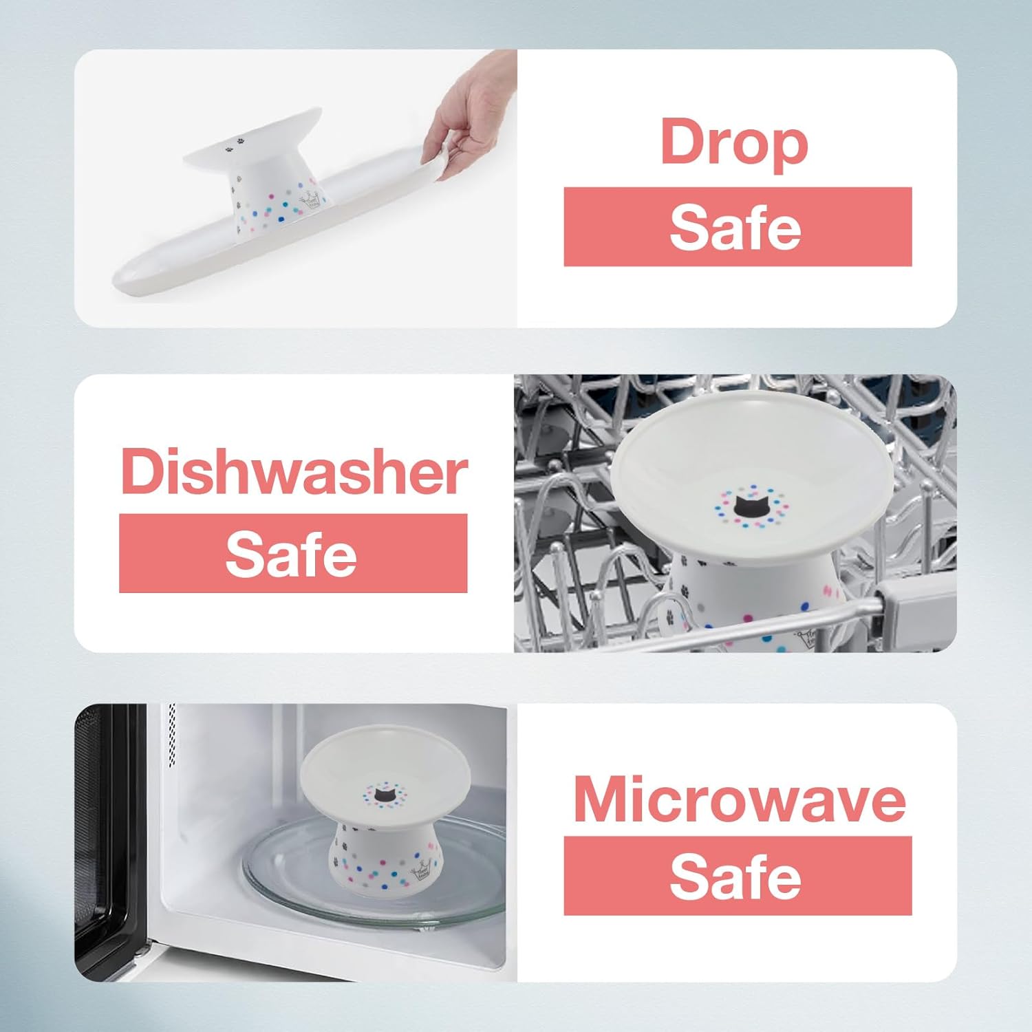- Safe, Durable & Easy to Clean: Made from high-quality porcelain, free from lead and cadmium; meets strict US, EU and Japanese safety standards; microwave and dishwasher-safe porcelain ceramic cat bowl.