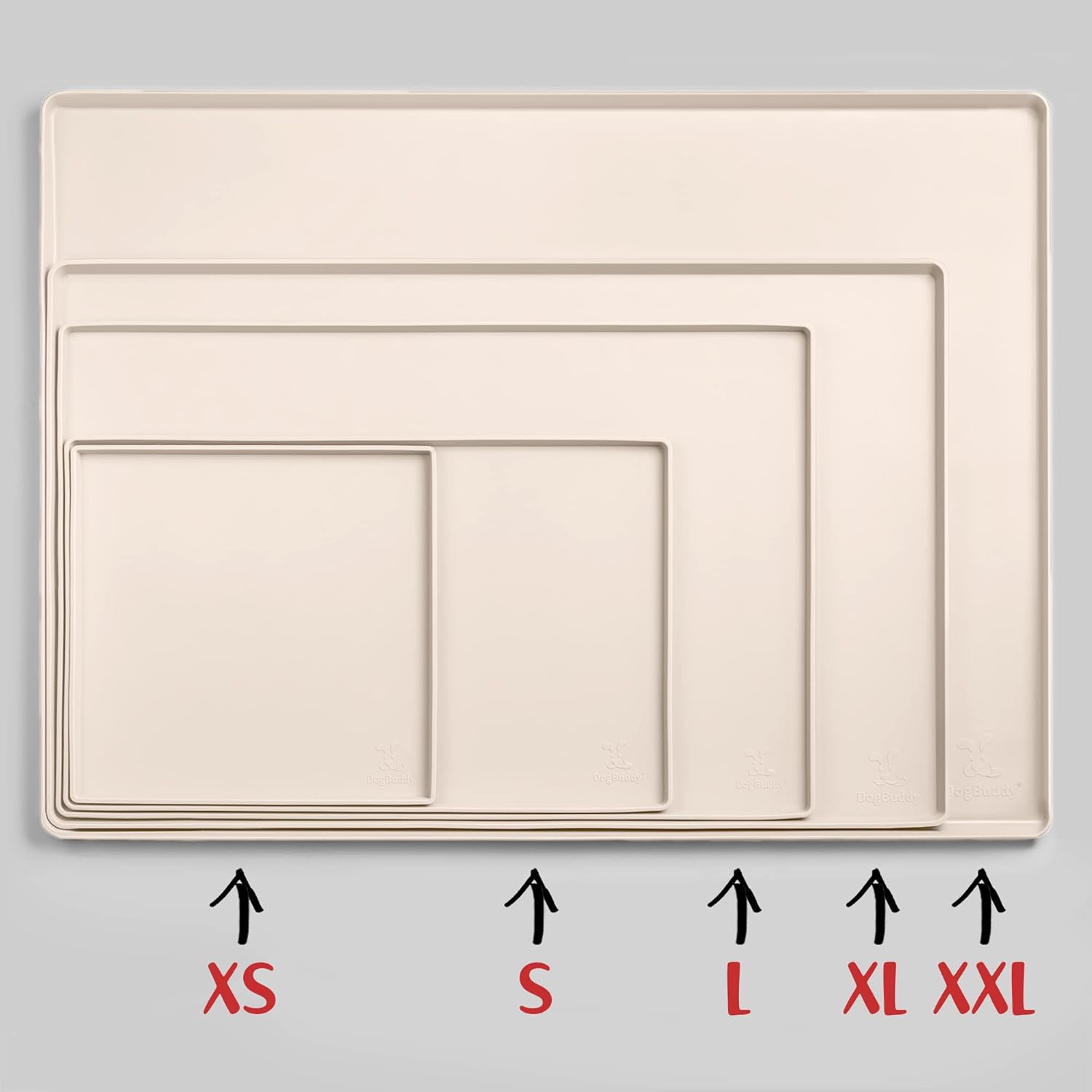 DogBuddy Dog Food Mat – Waterproof Dog Bowl Mat for Food and Water, Silicone Pet Feeding Mats for Floors, Non-Slip Placemat with High Edges for Dogs Bowls, Puppy Essentials (S: 19" x 12", Vanilla)