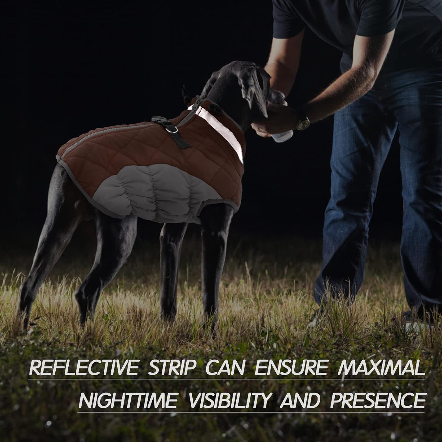 FUAMEY Dog Coat for Large Dogs,Waterproof Dog Winter Jacket with Harness Built in Puppy Cold Weather Coats Reflective Pet Vest with Zipper Warm Fleece Dogs Snowsuit Windproof Brown L