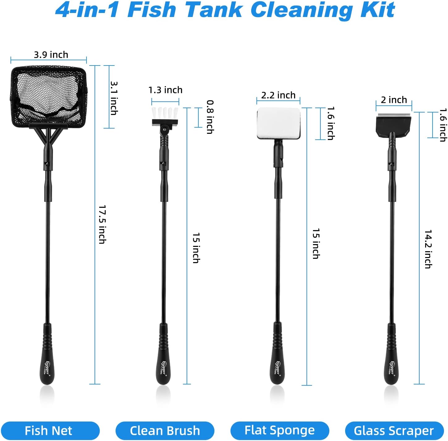 hygger Small Fish Tank Cleaner, Aquarium Cleaning Tools Kit with Handle, Seaweed Scraper, Fishing Net, Sponge Brush,Wall Brush (M)