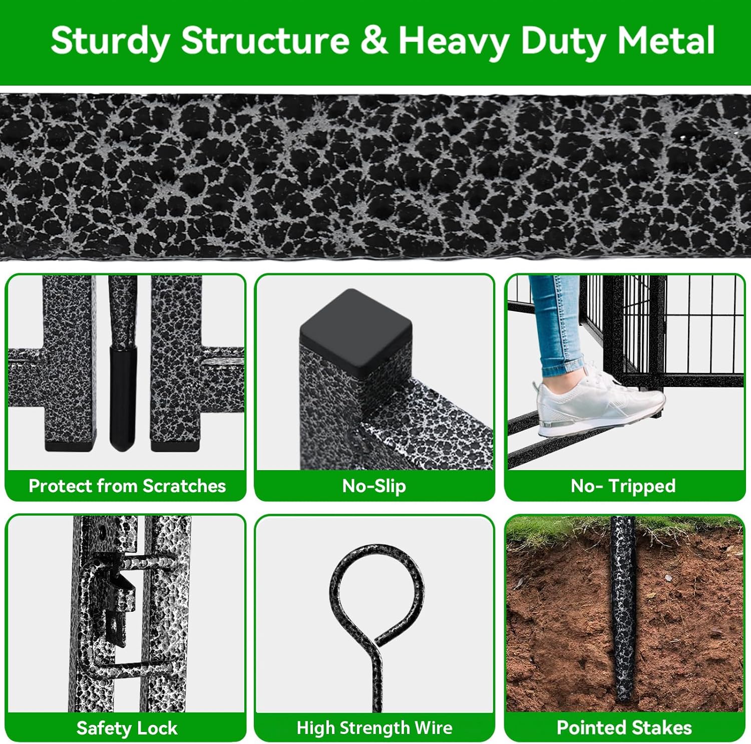 - 【Anti-Rust Coatings Material】Kfvigoho puppy playpen made of heavy-duty metal, sturdy and durable, steel wire smooth and solid, pet dogs couldn't damage or chew it, anti-corrosion coatings and rust-proof process helps panels works well outdoor and extend its life, the indoor and outdoor dog pen great for people with dogs