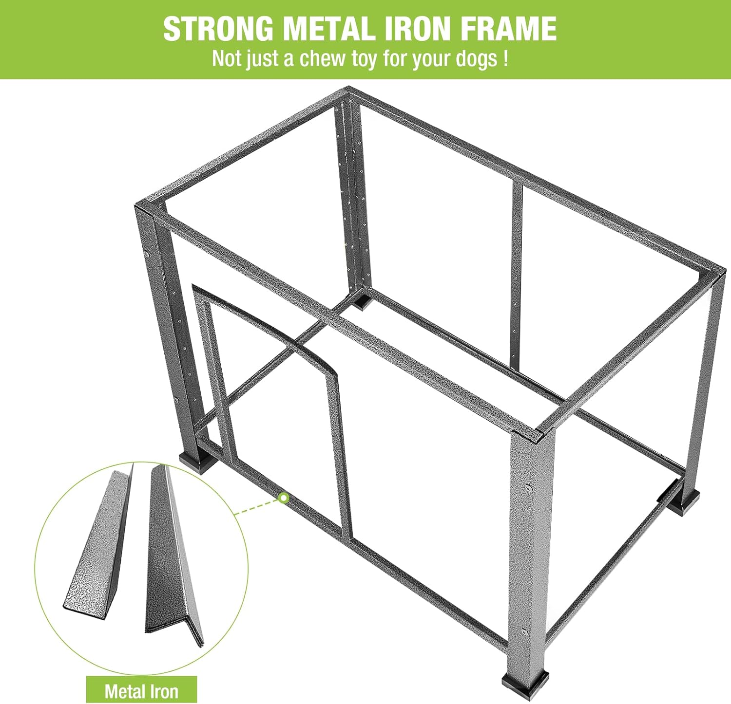GUTINNEEN Chew Proof Dog House with Metal Iron Frame Outdoor Dog Kennel for Small Medium Large Indoor Dog Cage (33.5" L,Brown Color)
