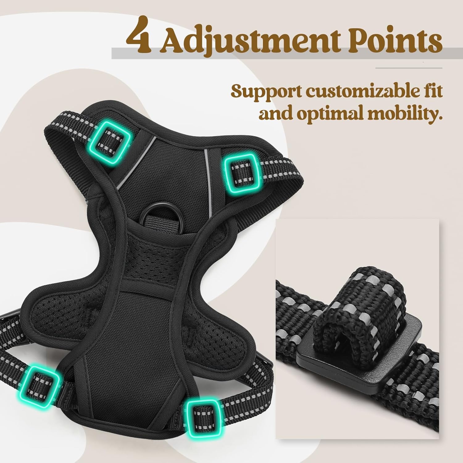 • Fully Adjustable - This adjustable harness features 4 easy adjusting straps around the body. You can use its 2 neck straps and 2 chest straps to create a perfect fit for your dog with some room of growth. No worries about slipping out or choking