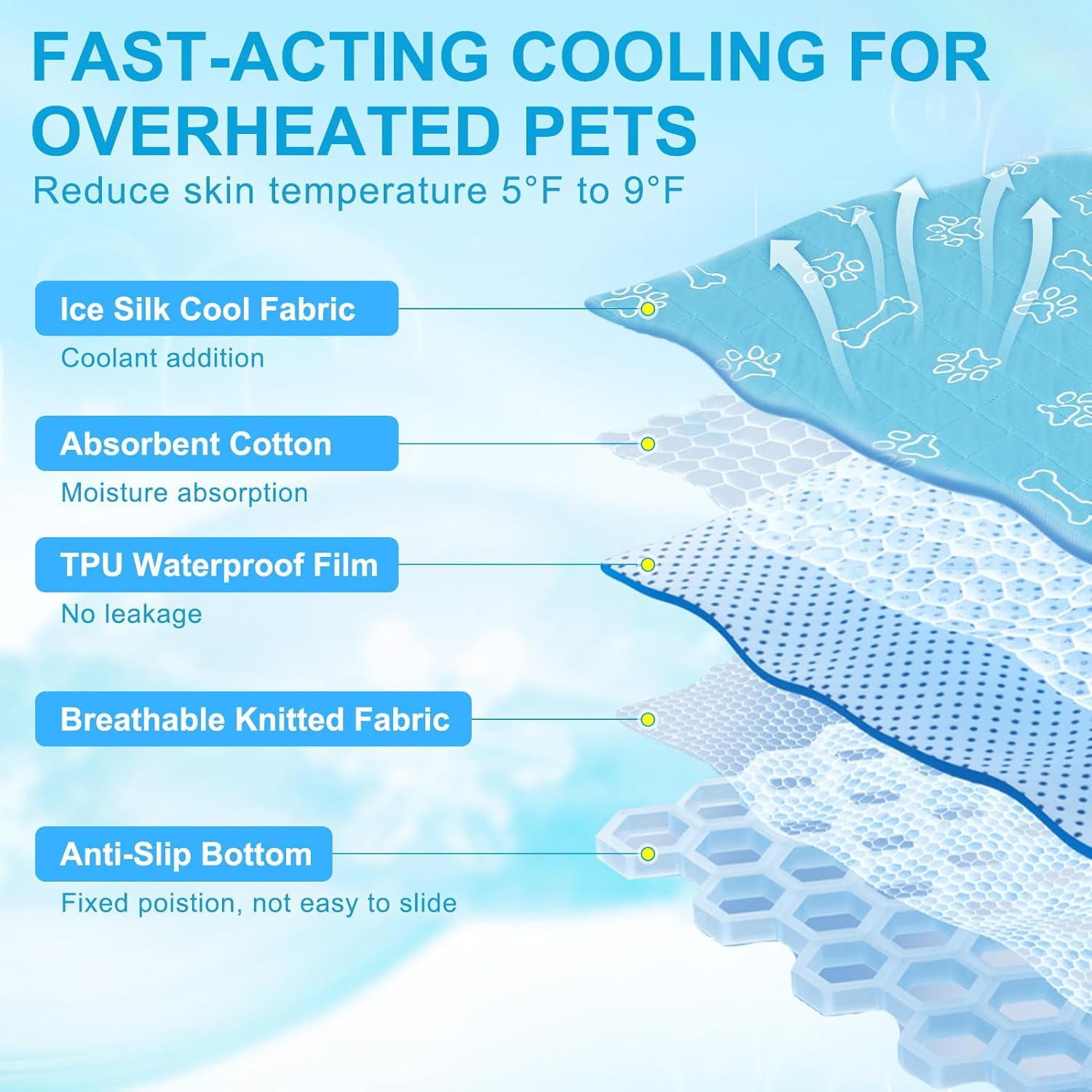 BEAUTYZOO Upgraded Dog Self Cooling Mat Ice Silk Chill Pads for Small Medium Large Dogs Summer Reusable Pet Training Pad Absorbent Non Slip Mat for Kennels, Crates & Beds,X Large 28IN x 47IN