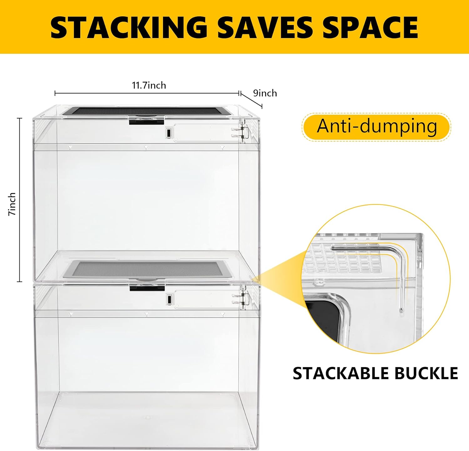 - Outstanding Design Details: Different from the ordinary acrylic material terrarium, our terrarium never break, HELIME PC terrarium adopt the one-piece design, no need to assemble, waterproof bottom makes this tank can be used both as a desert terrarium and rainforest tank, the feeding cover at the top, easy to feed your pet and prevent escape