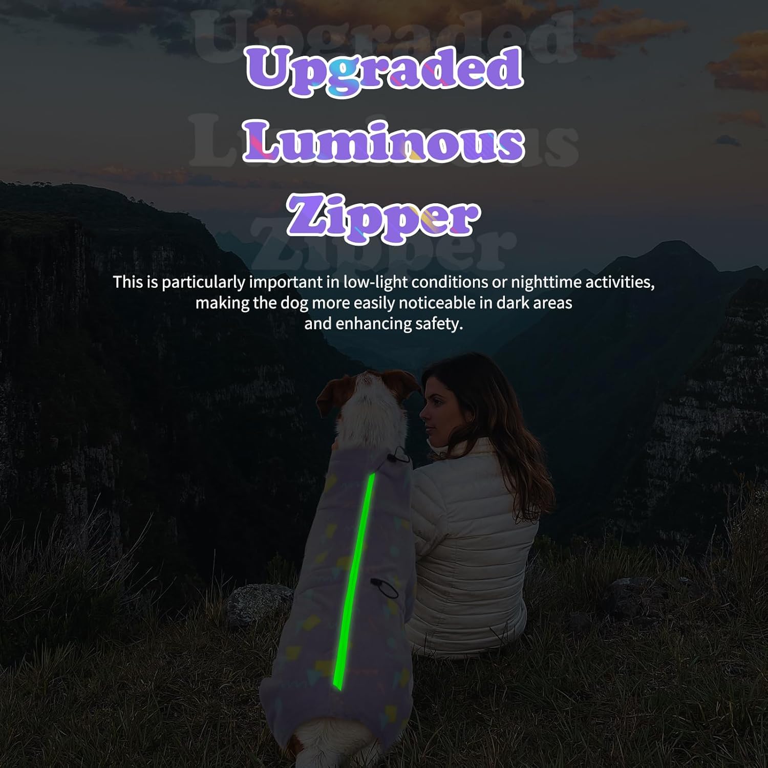 ROZKITCH Dog Fleece Coat, Pet Windproof Warm Cold Weather Jacket Vest with Luminous Zipper, Jumpsuit Apparel Outfit Clothes for Small Medium Large Dog Geometry L