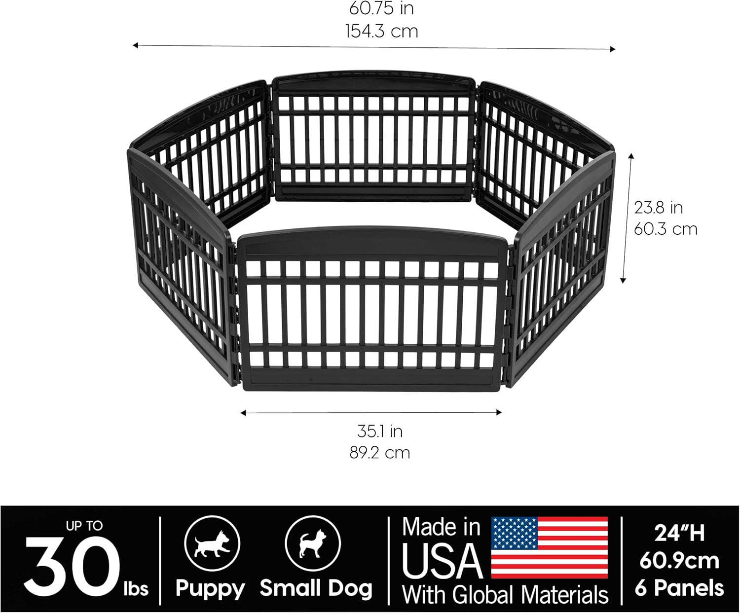 IRIS USA 24" 6-Panel Puppy Playpen, 61 x 61 x 24, Puppy Fence, Dog Playpen, Dog Play Pen Indoors, Pet Fence, Puppies/Small Dogs, Black