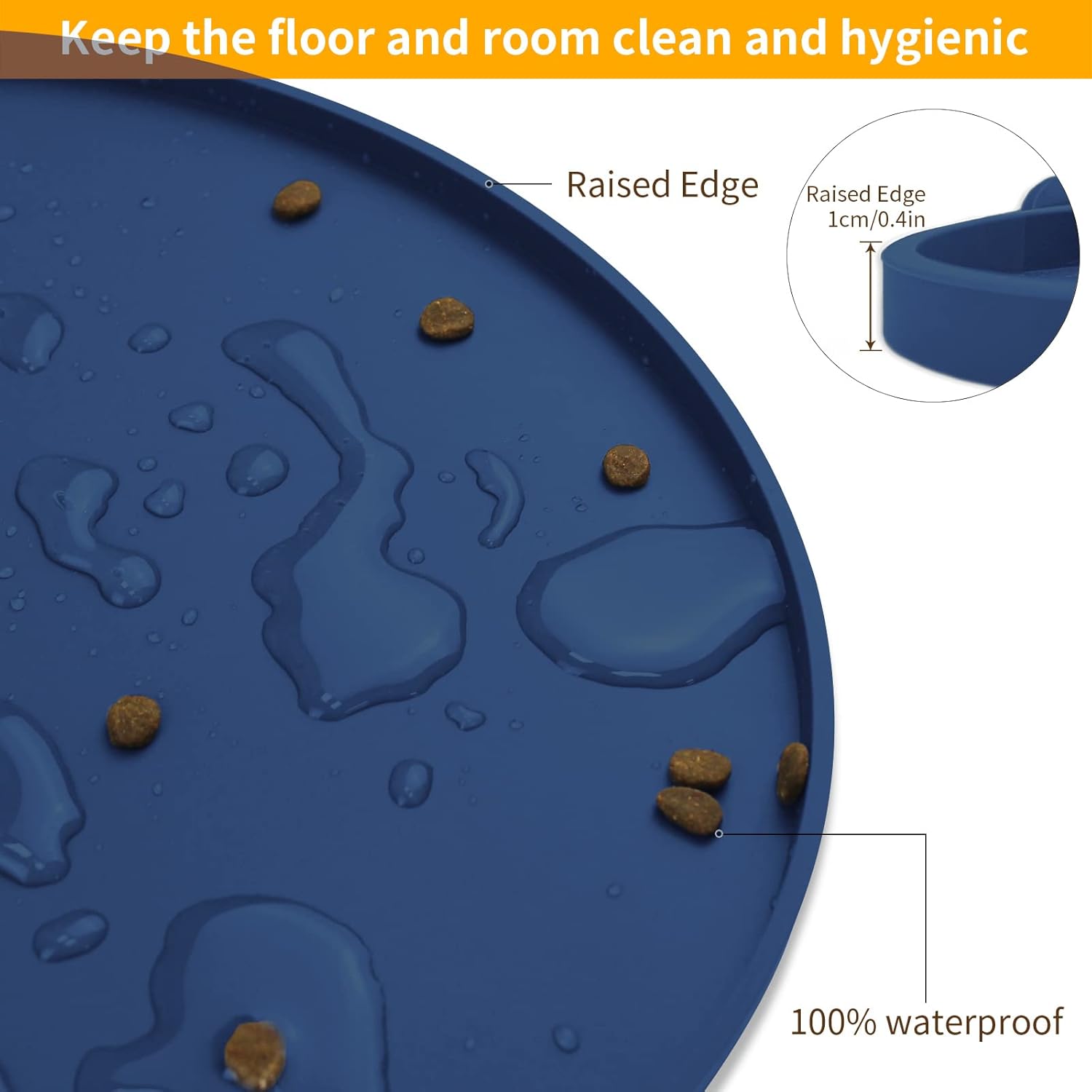 KPWACD Pet Placemat for Dog and Cat, Waterproof Silicone Dogs Feeding Bowl Mat Prevent Food and Water Overflow, High-Lips Puppy Dish Mats Suitable for Small Medium Big Pets, Navy, 24" * 16"