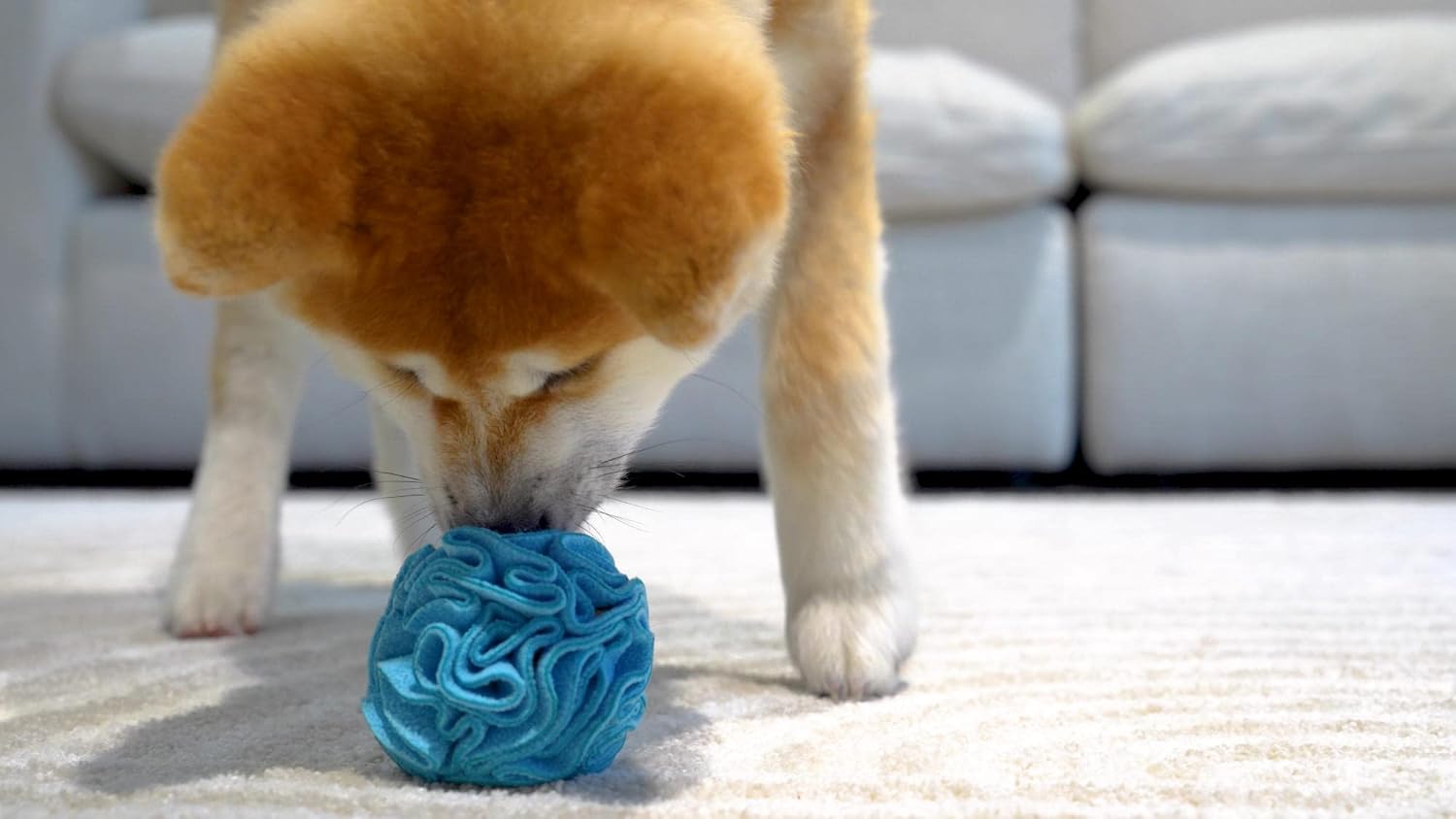 - Interactive toys engage pups in a way that requires action, decision-making, and responses. This snuffleball entices dogs, using their sense of smell, to find hidden treats within the folds. By stimulating their curiosity and rewarding them for their foraging behavior, the toy encourages dogs to actively search and solve the puzzle, providing both mental and physical interaction during playtime.