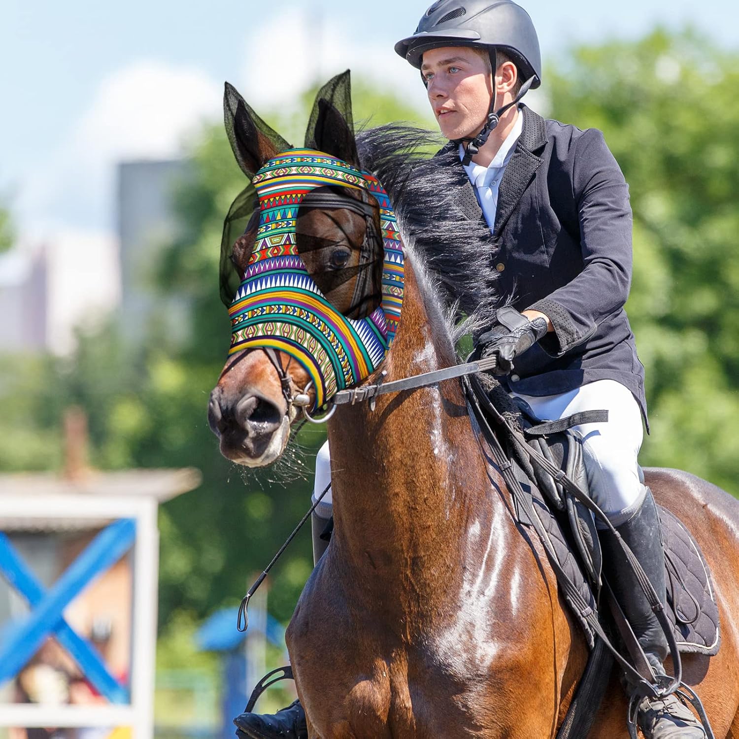 - Package Include: you will receive 12 pieces large size horse fly masks, each of them is different geometric patterns, enough for your horse daily replacement, and you can also share with your family members and friends who keep horses