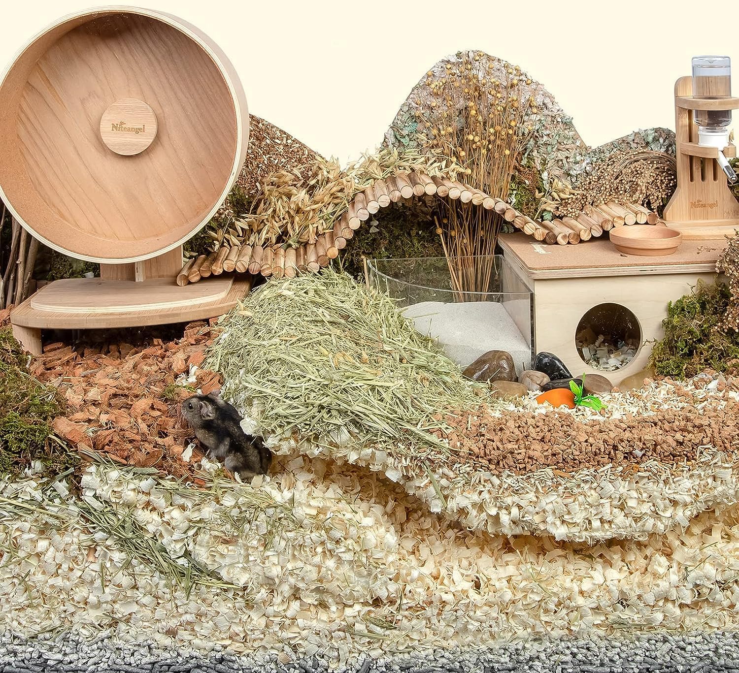- [Soft Texture & More Comfortable] Niteangel tiny pet aspen bedding is made from natural Aspen wood and safe for small pets. The soft fluffy texture allows your critters to play freely on the aspen shavings bedding. The small pet bedding is not only good at absorbing the annoying smell of the cage, but also gives the hamster a natural and comfortable habitat.