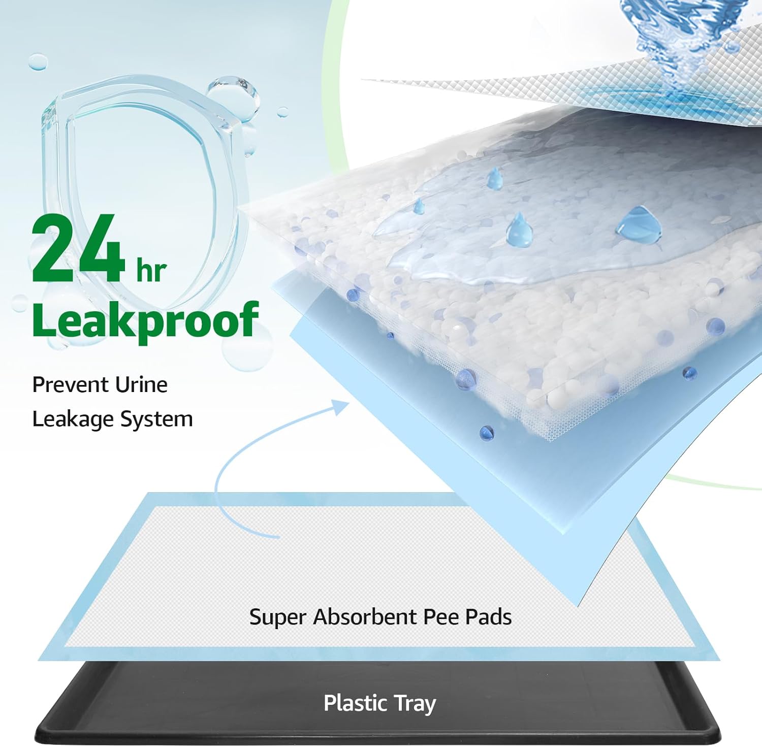 - 5 DISPOSABLE PEE PADS: The dog grass pad with tray system come with an incredible dog pee pad solution. Advanced absorption technology from Japan,when the drainage holes get the liquids to travel downwards, Oiyeefo puppy pee pad catch the urine and absorb it quickly, so the extreme odor-causing issues can be easily curbed.