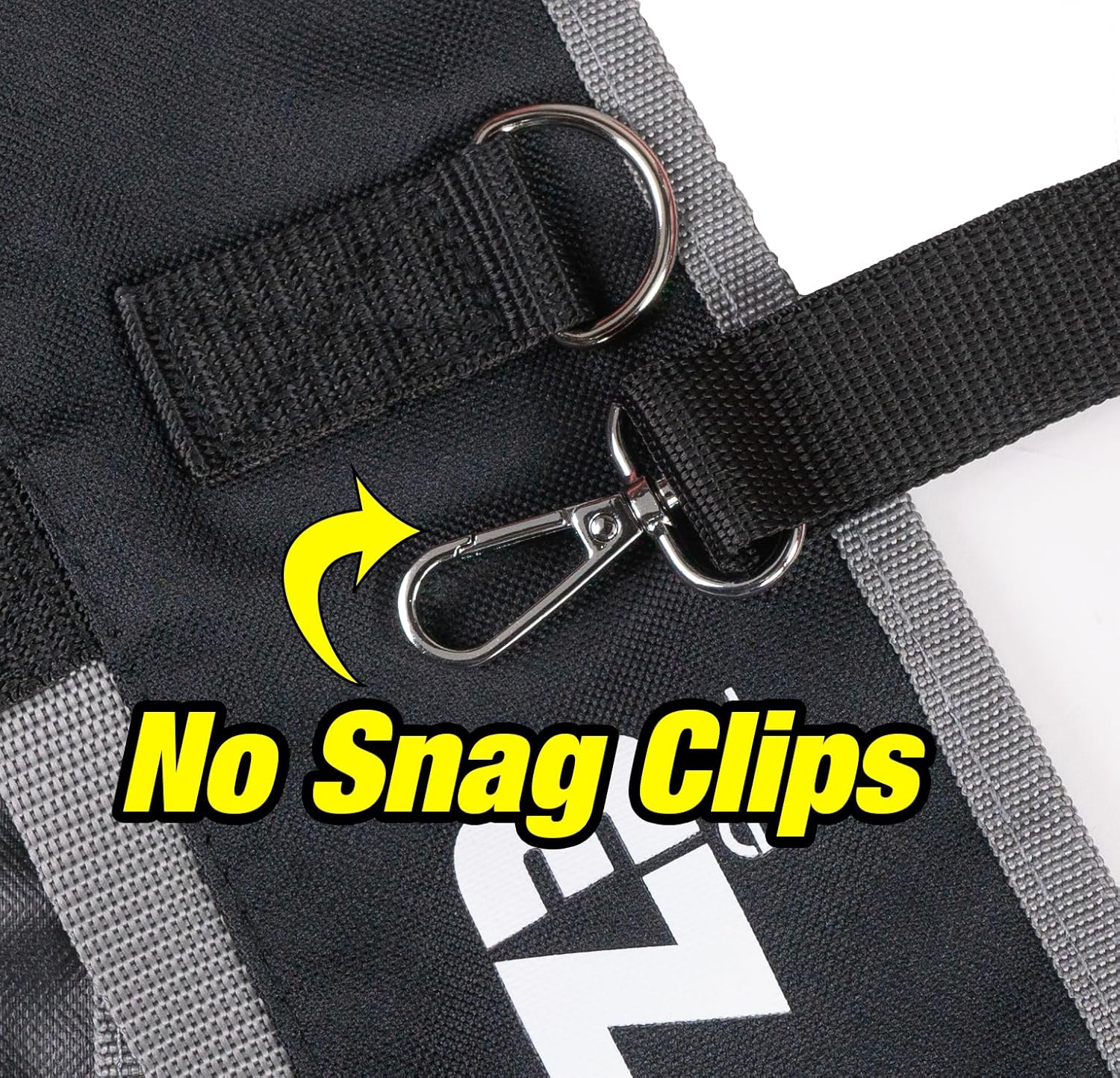 - INCLUDES - This portable, space saving bag has adjustable straps with nickel plated bolt snap and rings. It will keep fan securely in place. *Fan not included