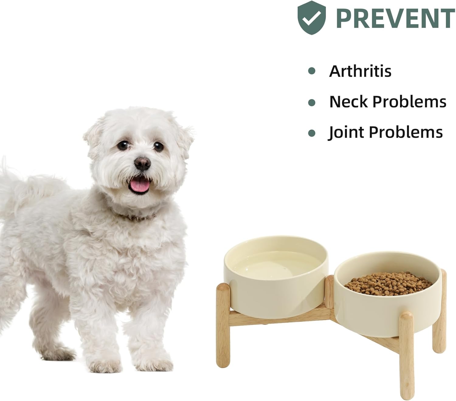 - Stable and Non - slip: Heavy - duty ceramic dog feeding bowl with wooden stand prevents bowls from sliding while your pet is eating.