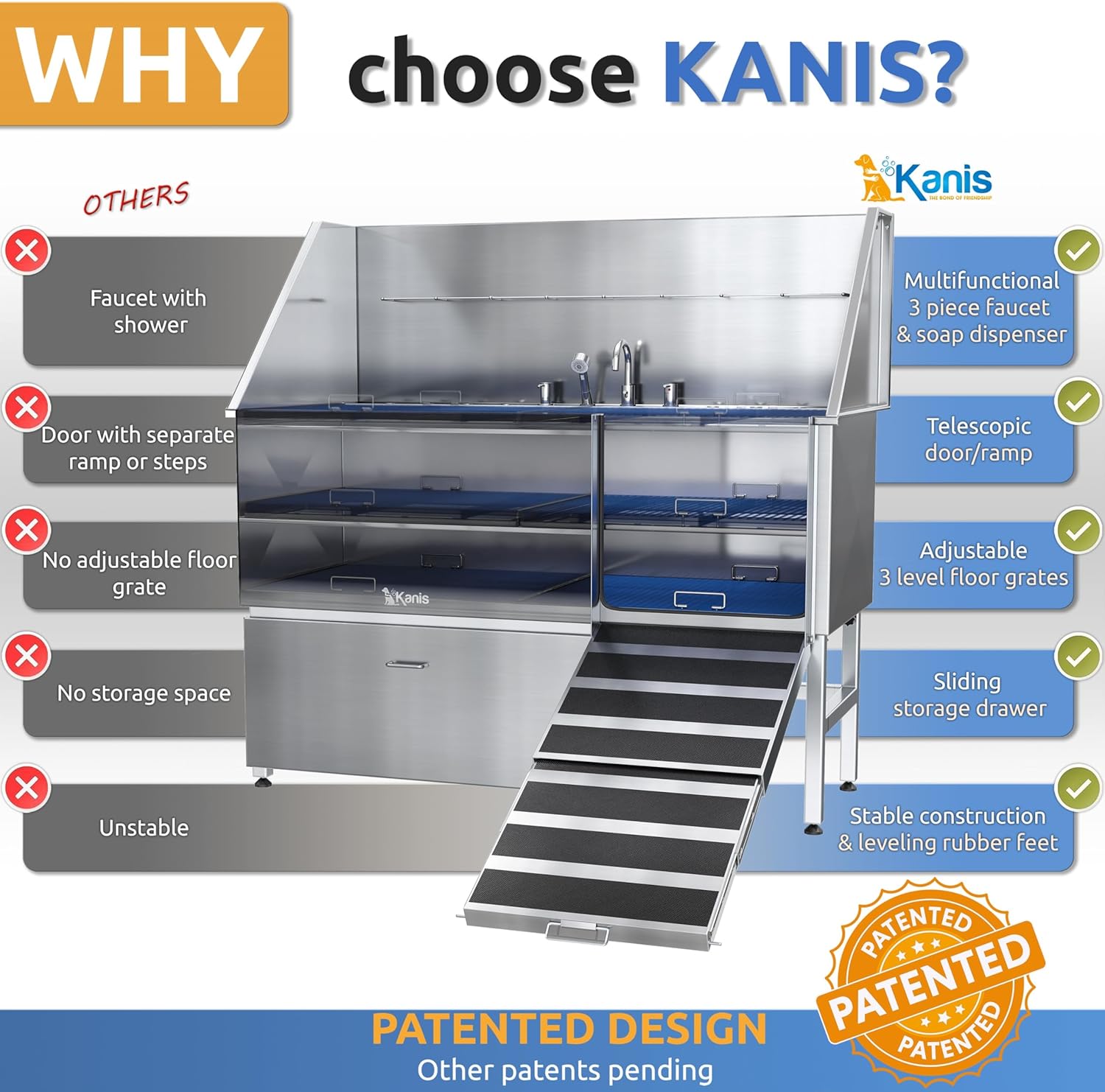 - 61" UTILITY & GROOMING STATION: KANIS presents a versatile dog bathtub designed for both pet washing and household cleaning tasks. Perfect addition and easy to install in any grooming salon, utility room, laundry, garage, or mudroom