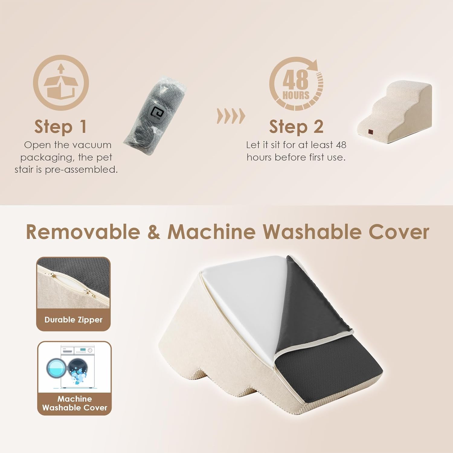 • SPECIFIC AND STEADY DESIGN - 33D density of pure foam make this stair more steady when your pets walk on. The dog bed stairs can provide strong support for pets in the walking process. Low angle slope design can better protect your pet's joints.