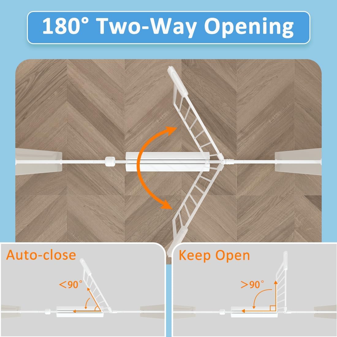 - 180° automatic opening and closing - The innovative 180° automatic opening and closing feature allows for effortless access. Simply push the dog gates for doorways to open, and it will gently close behind you, providing convenience for busy parents while ensuring the safety of your child