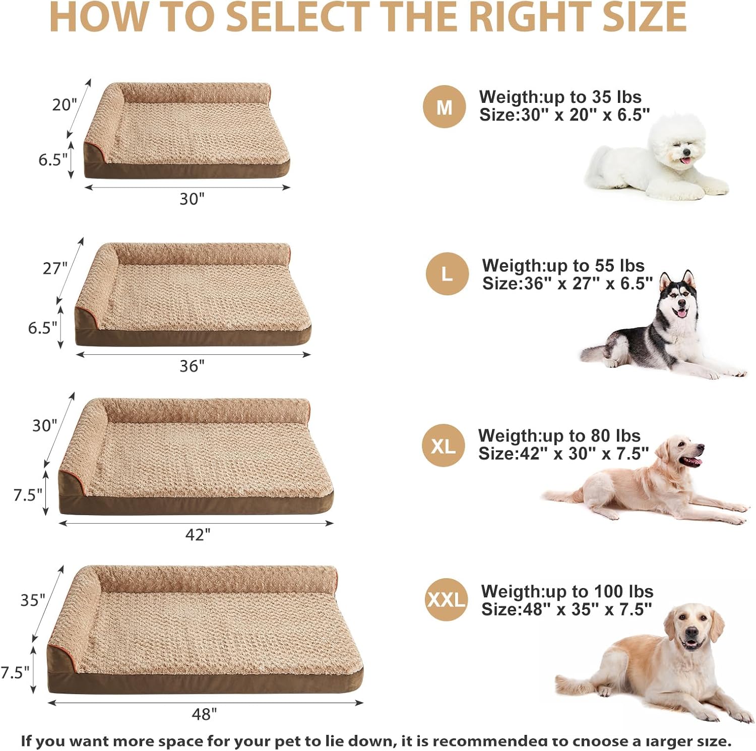 - L-SHAPED DOG BED: This X large dog bed adopts L shaped design, the dog beds Soft and comfortable rails provide extra support for our pet's head and neck, and the dog sofa bed has no railings on two sides, providing plenty of room for pets to stretch out. The dog beds for large dogs allow pets to be more soothed and relaxed and to fall into a deep sleep.